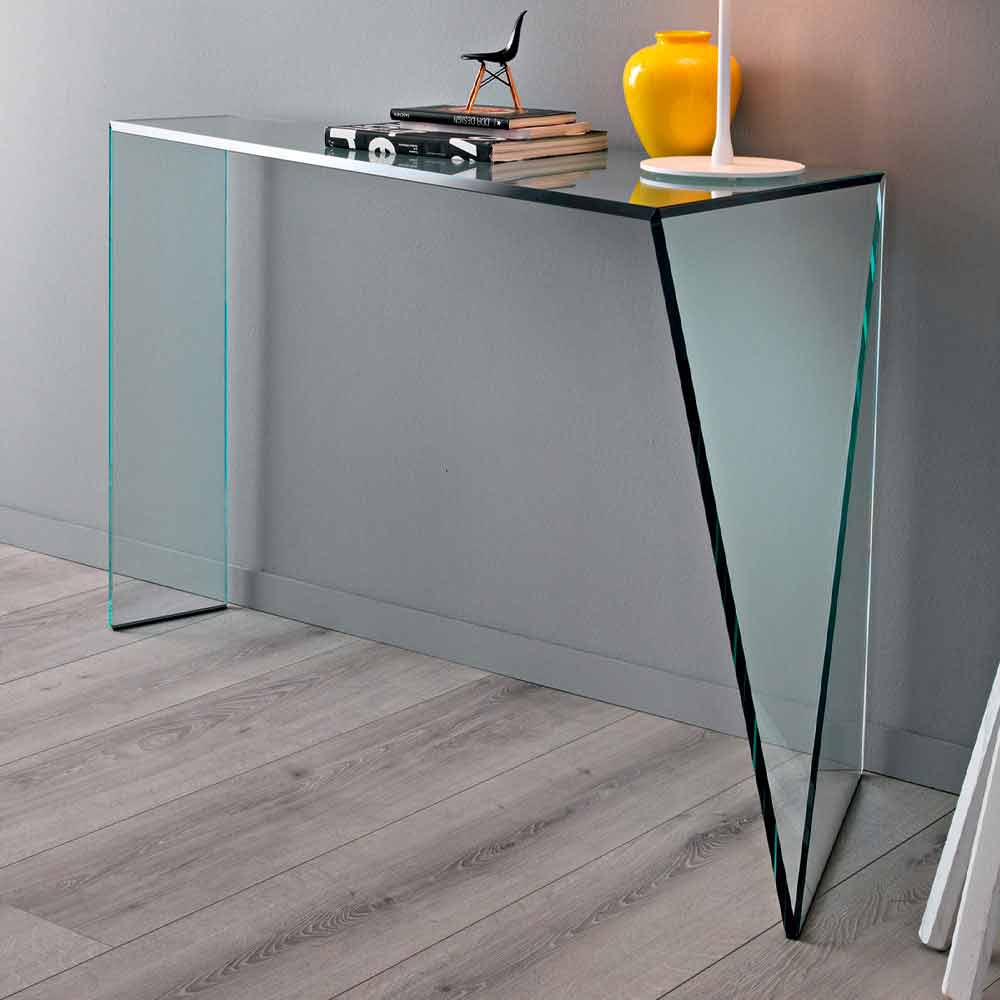 Modern consolle handgemaakt in Italië in extrahelder glas.