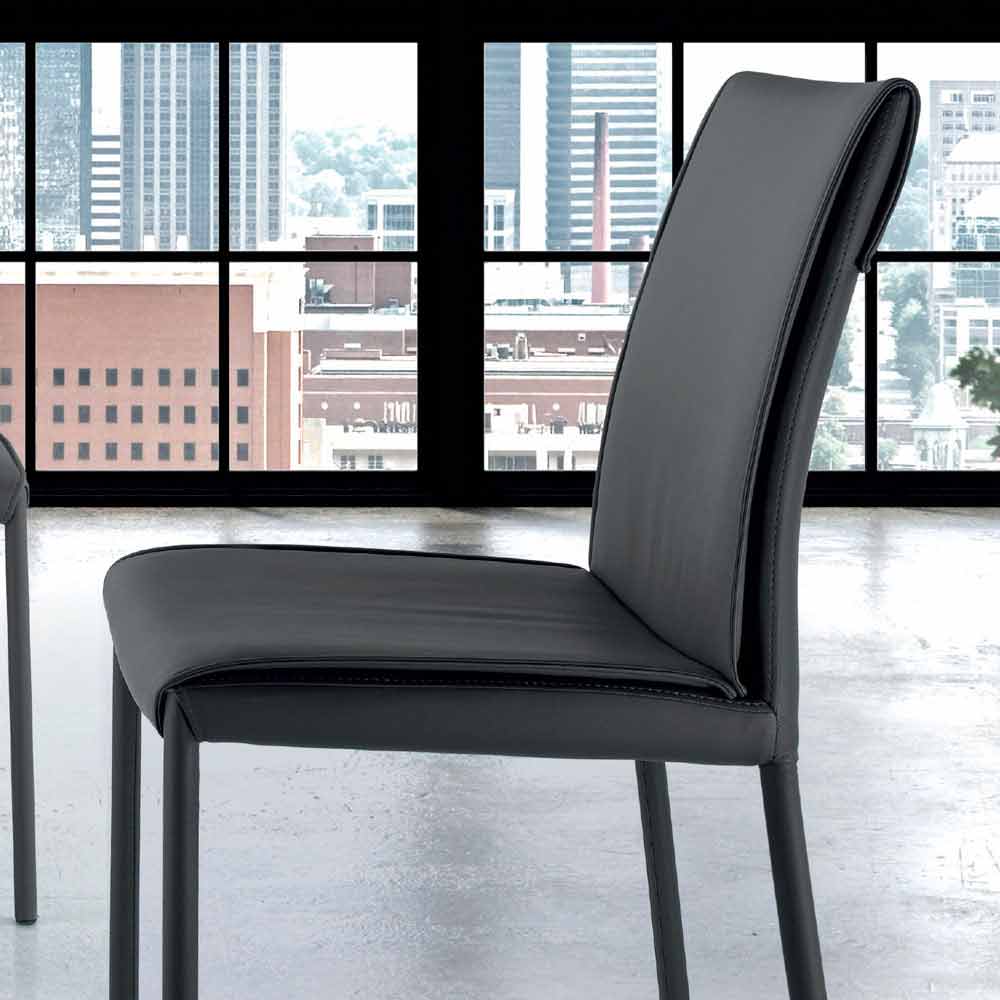 Gewatteerde eetkamerstoel volledig bekleed met stof, leer, fluweel of eco-leer; handgemaakt in Italië.