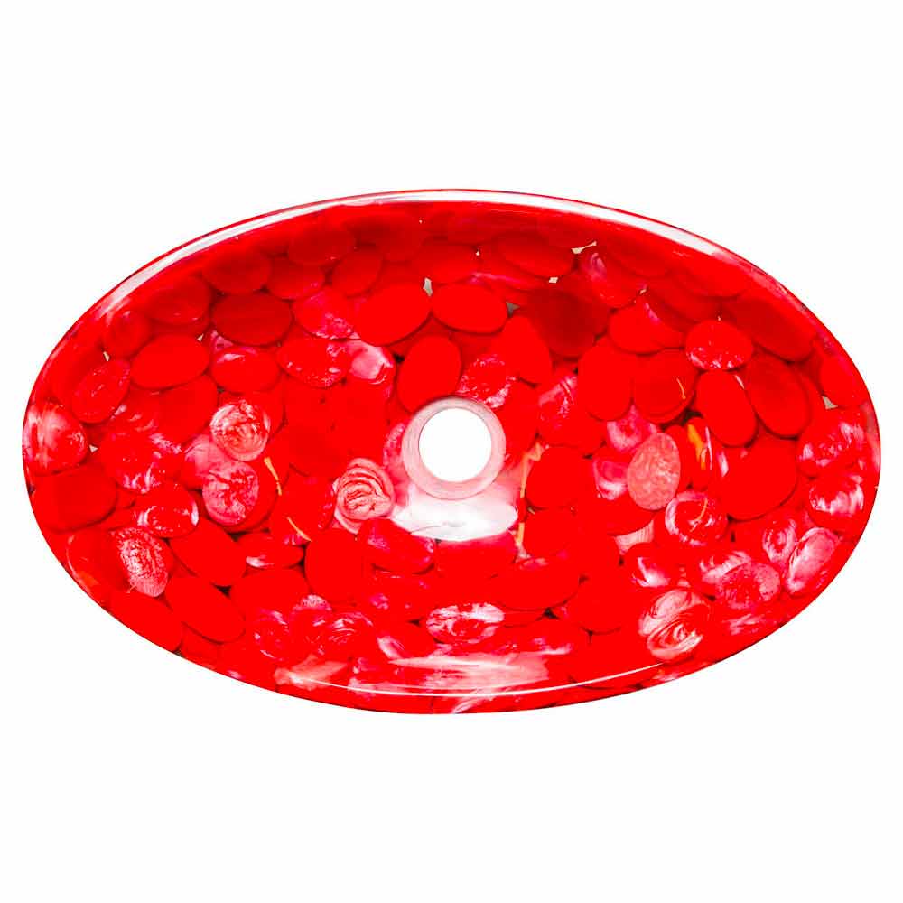 Buscate is een fantastische wastafel op het aanrecht, met de hand gemaakt met een hoogwaardige kunsthars, waarbinnen stenen zijn gemonteerd.