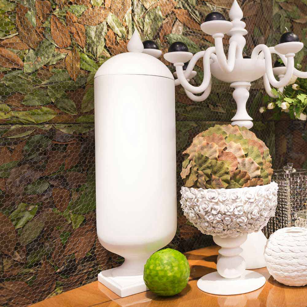 Moderne vaas voor interieurs in ondoorzichtig wit keramiek, handgemaakt door een 100% Made in Italy-productie . Een ontwerp onderbroken door verschillende en eenvoudige geometrische vormen die leven geven aan een unieke aanvulling die wordt gekenmerkt door een verfijnd minimalisme, ideaal voor diegenen die ervan houden om op een essentiële manier maar met persoonlijkheid en karakter in te richten . Het vakmanschap onderstreept de waarde ervan en wordt gekenmerkt door precisie, passie en liefde voor traditie. Het resultaat is een idee van exclusief meubilair dat ideaal is voor de meest uiteenlopende omgevingen, van woninginrichting tot die van hotels, restaurants, contractruimtes, spa's, maar ook als decor voor evenementen en bruiloften.