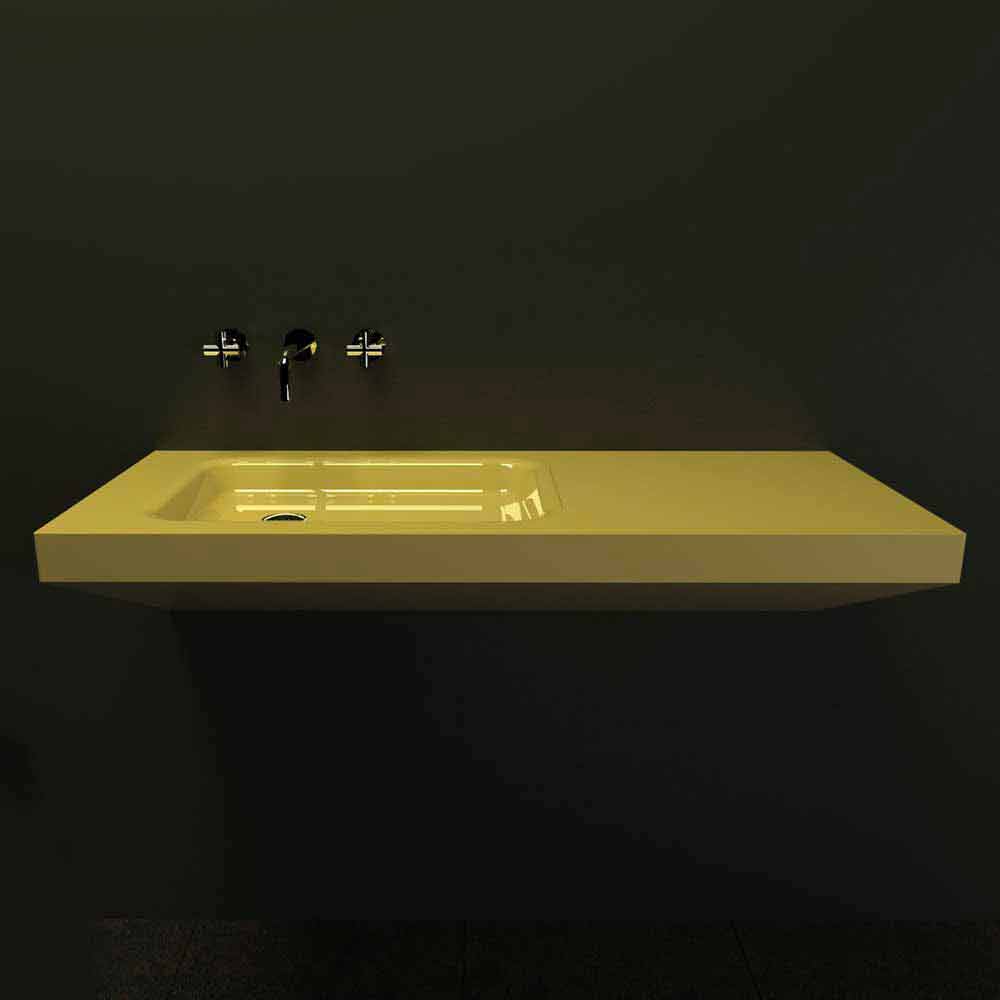 De vormen en de zorgvuldige materiaalkeuze creëren een spel van materiaal en chromatische contrasten die de wellnessruimte van het huis verfraaien, strakke en beslissende lijnen maken van deze wastafel een designstuk voor de badkamer.