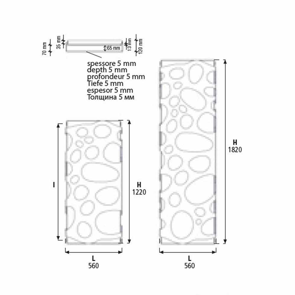 Verkrijgbaar in verschillende maten *:- H 1220 x L 560 x Inter. 1160 mm x uitgang w (Δt50 *) 608; Opbrengst w (At30 *) 320; Opbrengst w (At26 *) 268
