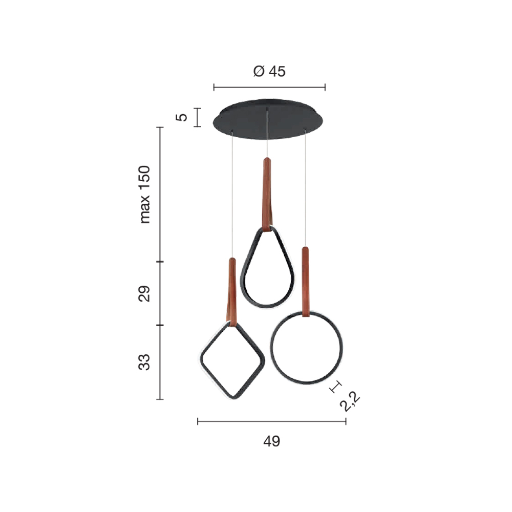 - hanglamp: lengte 22,5cm x hoogte 32cm