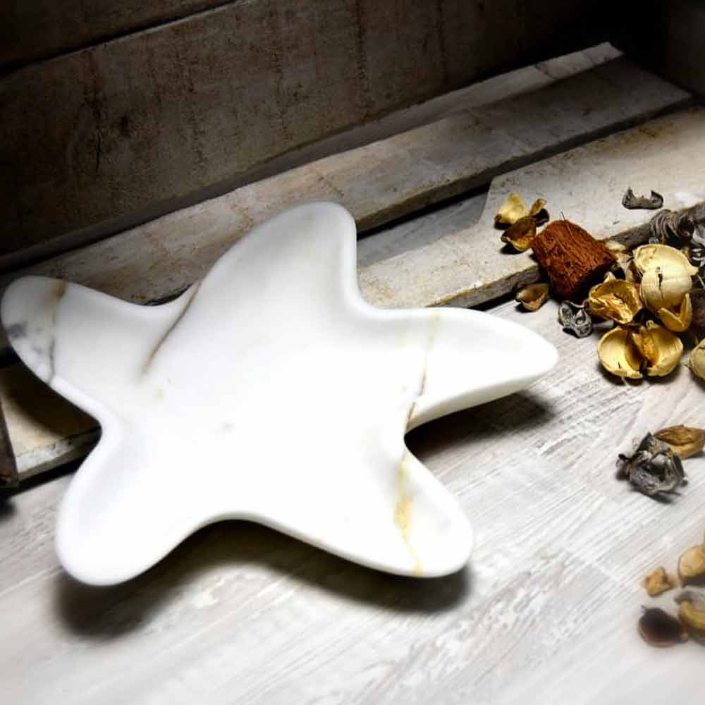 Zeester vormige schotel van satijn marmer van Made in Italy design.