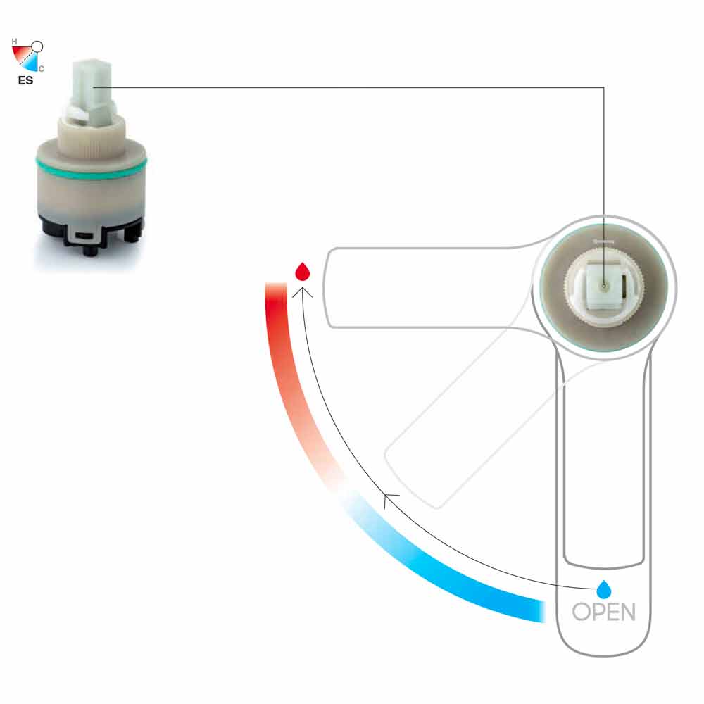 ES levert koud water wanneer de hendel in de middelste stand wordt geheven, waardoor het verzoek om warm water naar de ketel wordt vermeden, waardoor een consequente energiebesparing mogelijk is.