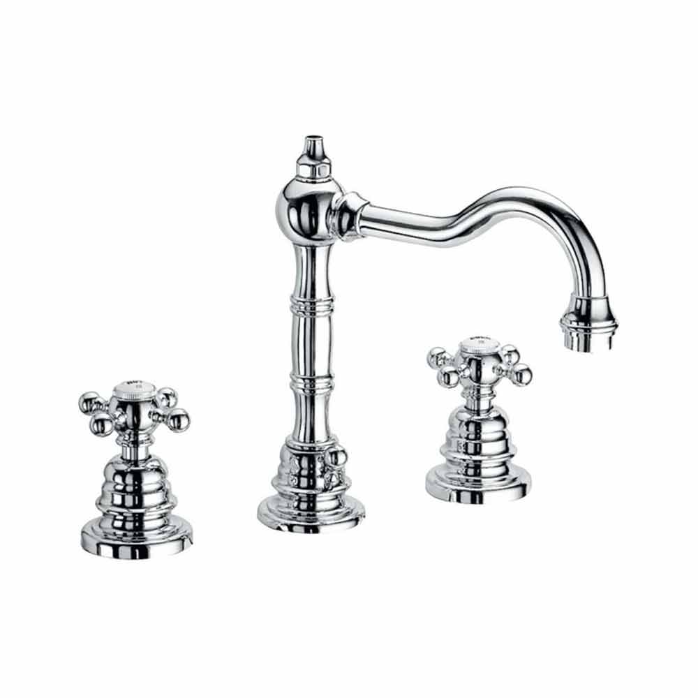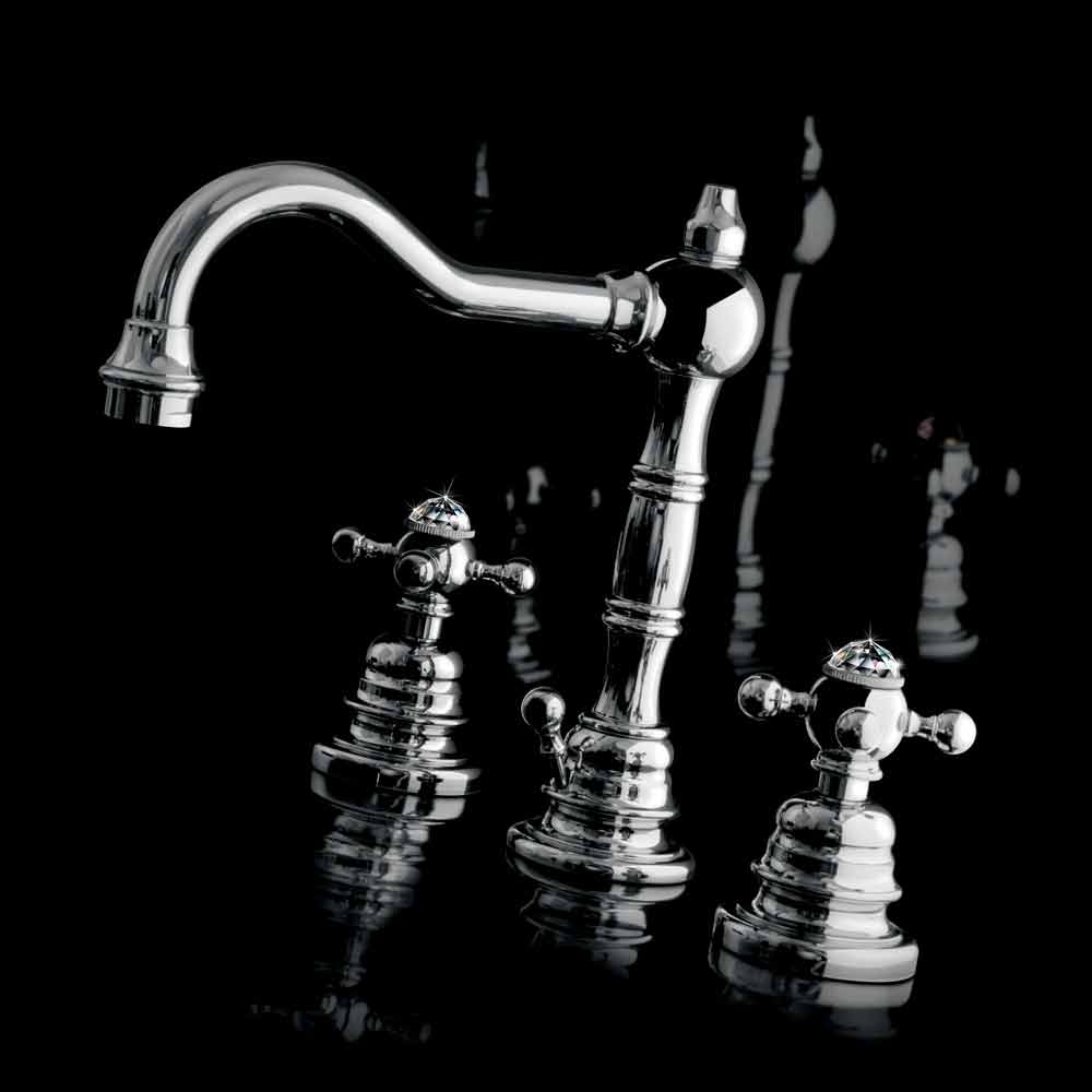 Design driegats wastafelmengkraan in verchroomd messing Made in Italy.