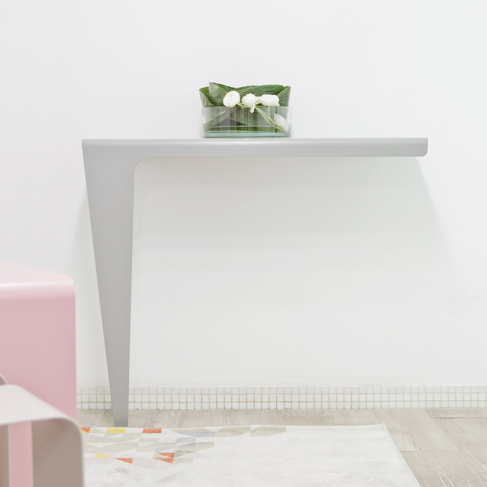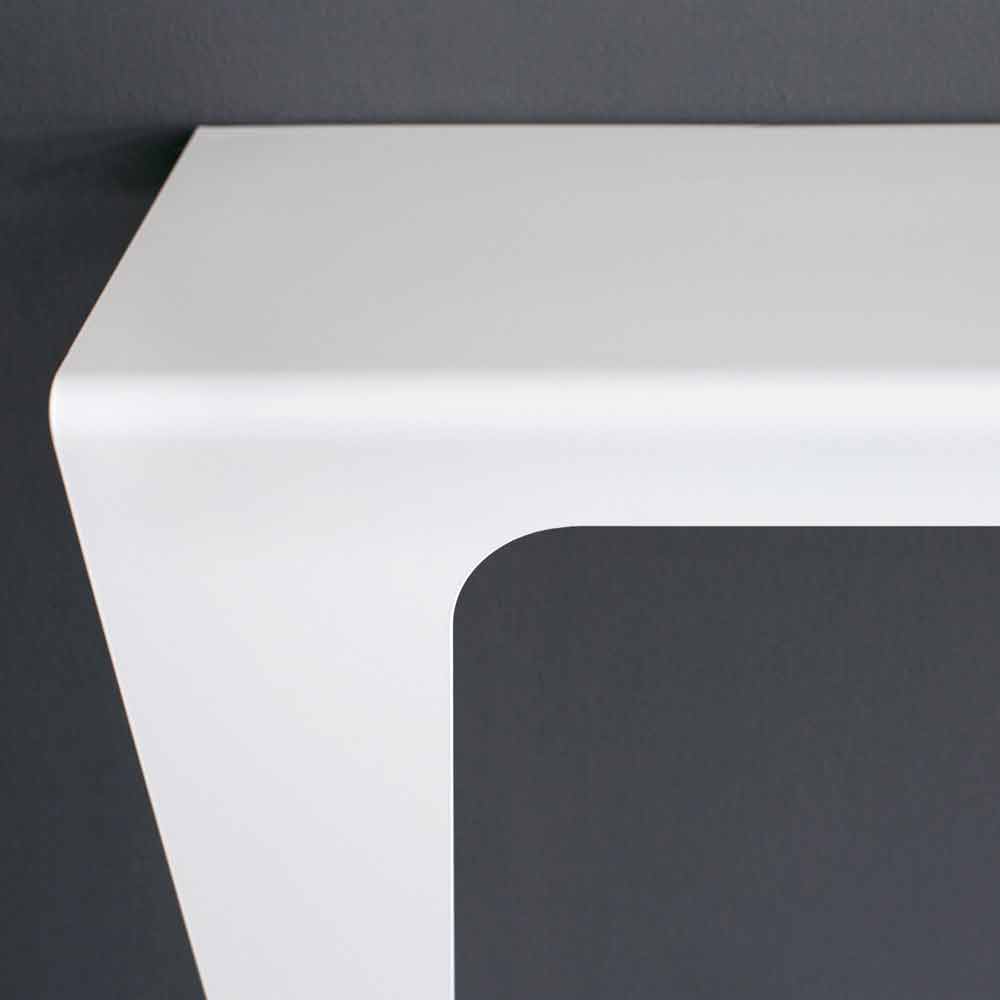 De uitgebalanceerde, gereduceerde, vereenvoudigde lijnen geven leven aan een sterke scenografie in moderne stijl die de wandconsole uniek maakt, aanpasbaar aan elke omgeving, aangezien hij over een grote veelzijdigheid beschikt.