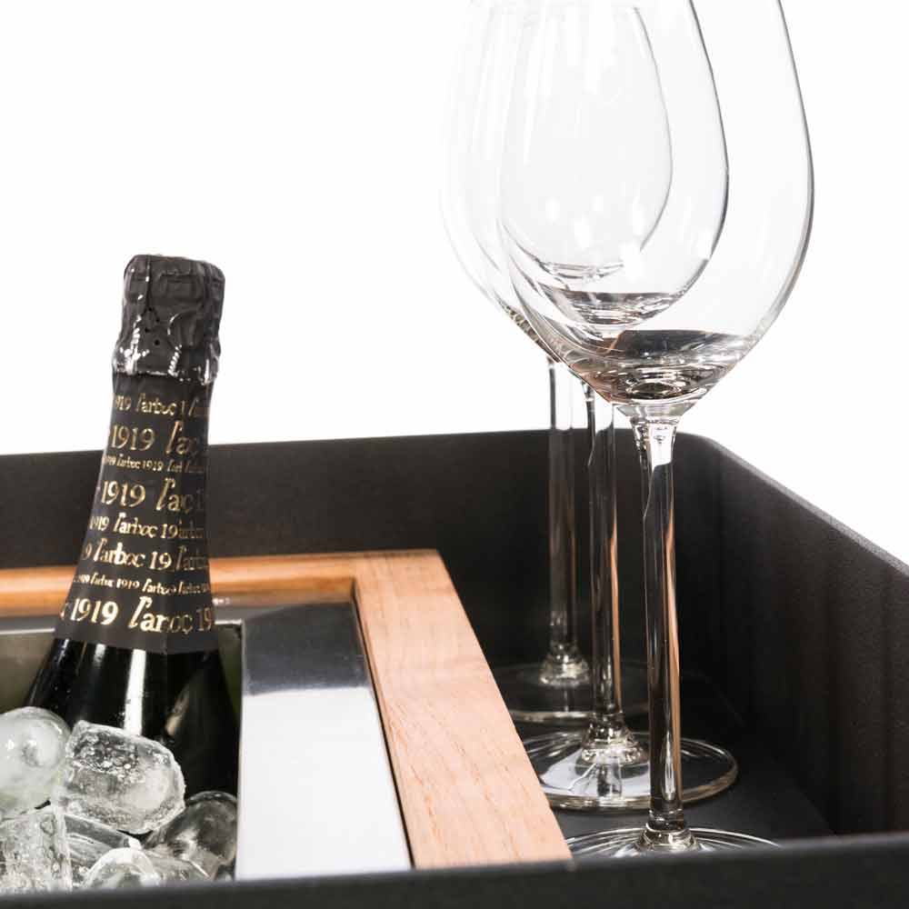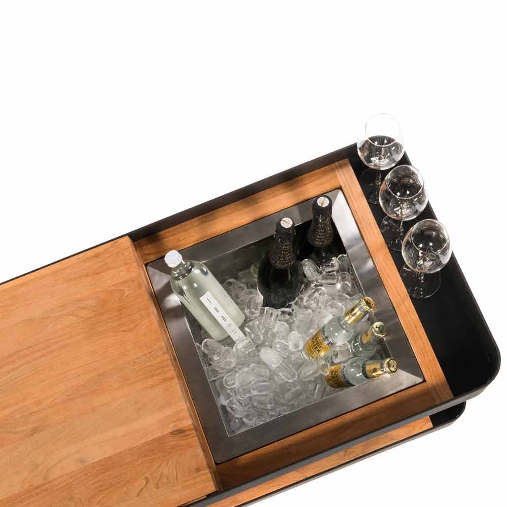 Neem deze mobiele bar overal mee naartoe om drankjes altijd vers en bij de hand te houden! Hij kan met of zonder ijsblokjes worden gebruikt en er is geen elektrische aansluiting nodig. Sterker nog, het houdt dranken en etenswaren koel dankzij de dubbele kamer koelcontainer met deksel. Het is een multifunctioneel product: bar / tafel voor binnen en buiten .