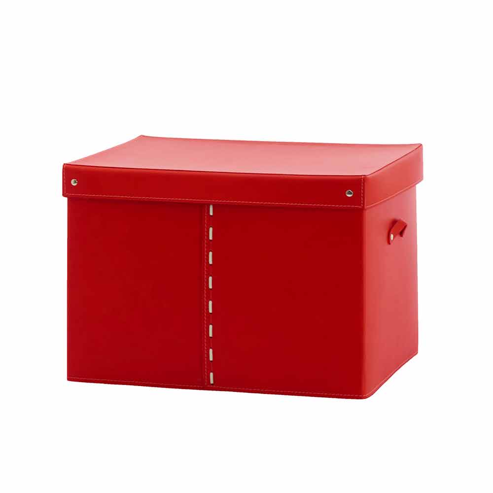 Moderne design opslagcontainer handgemaakt in Italië in gekleurd geregenereerd leer.