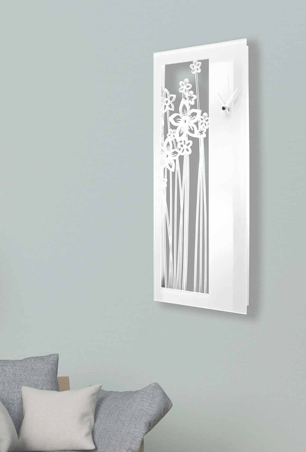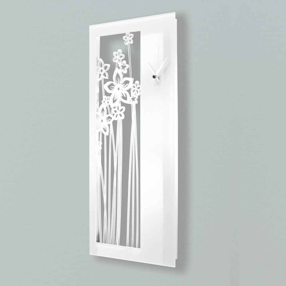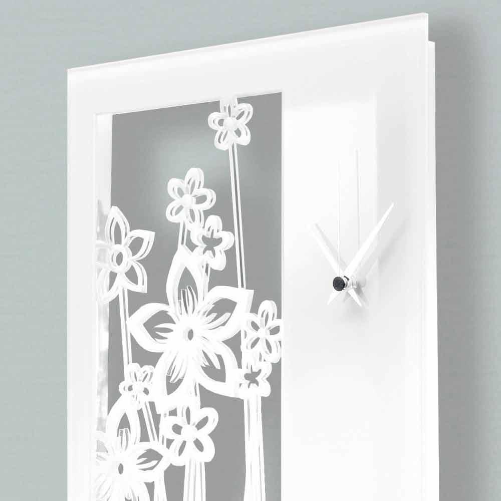 Grote wandklok met een rechthoekig en modern design in wit plexiglas, gemaakt in Italië.