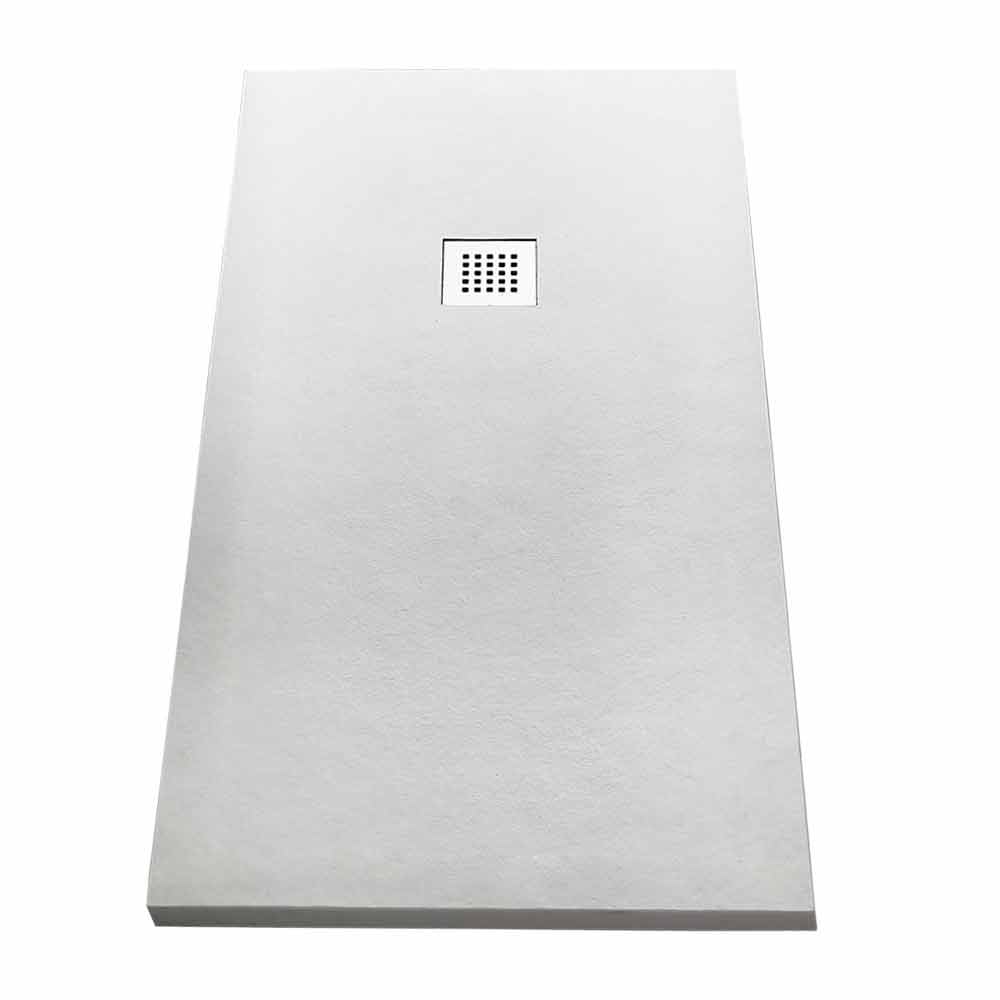 Moderne douchebak 160x80 in hars met afwerking in steen en staaleffect.
