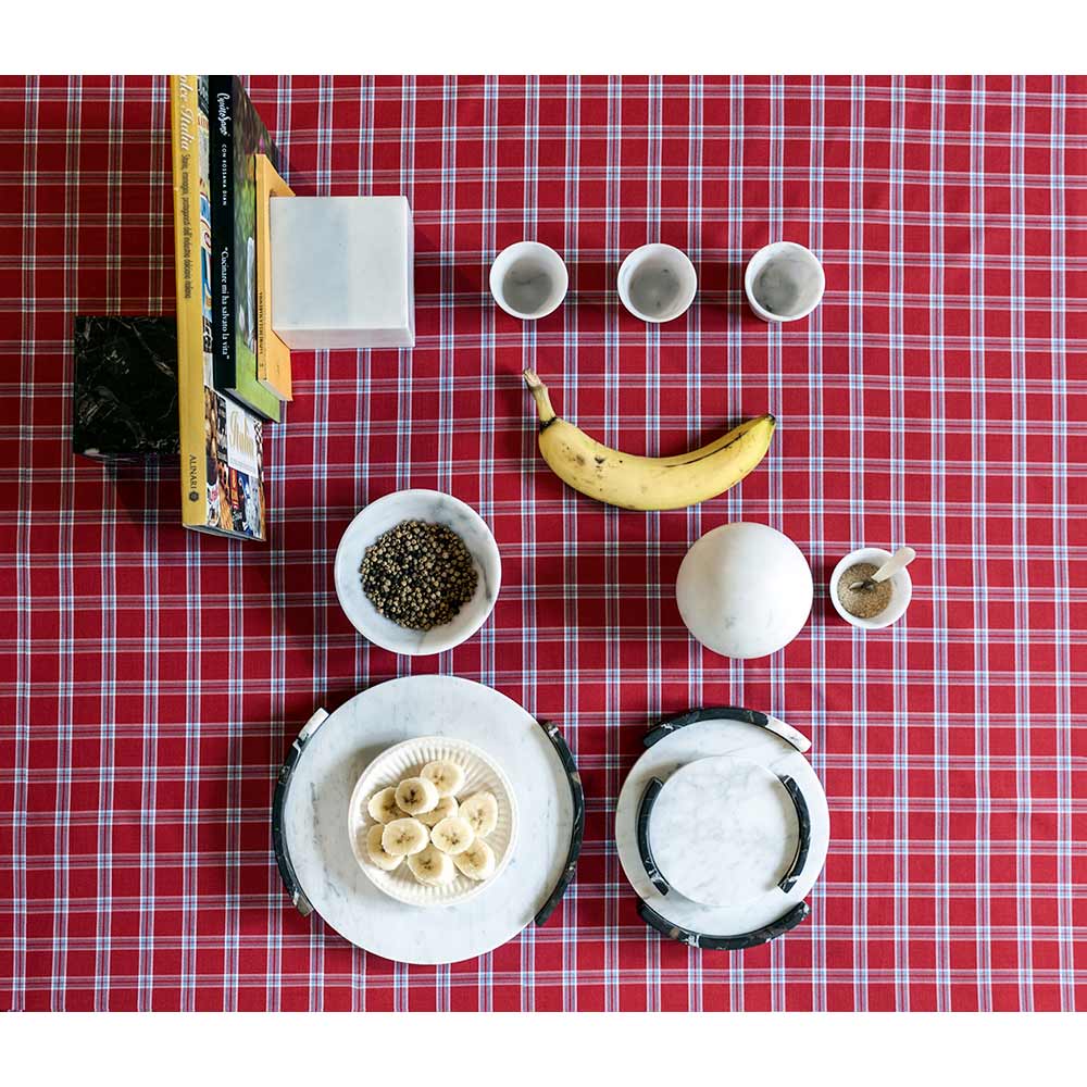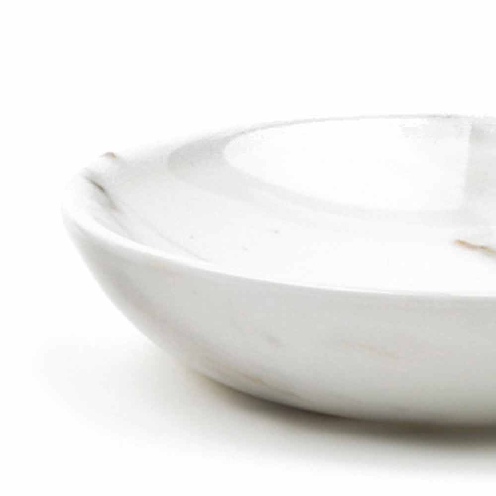 Ronde design schotel in wit, grijs, zwart of roze marmer Made in Italy.