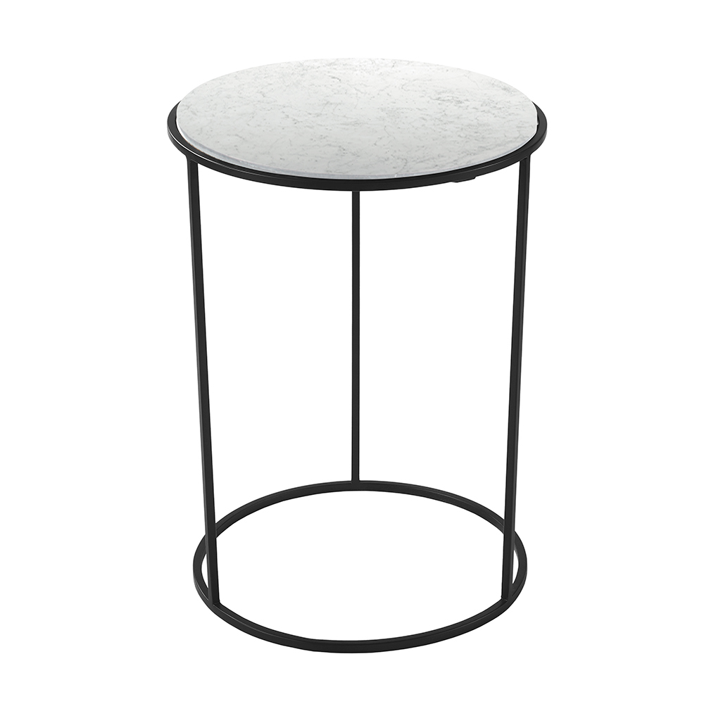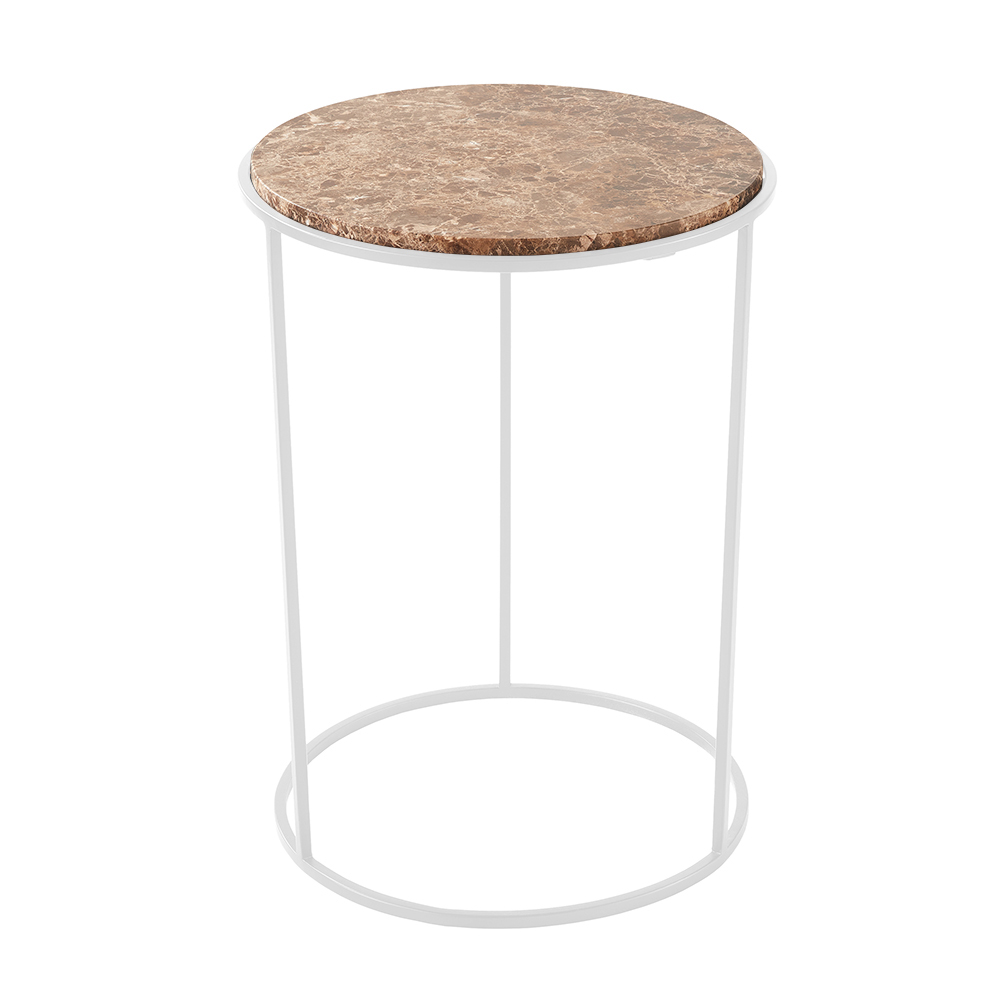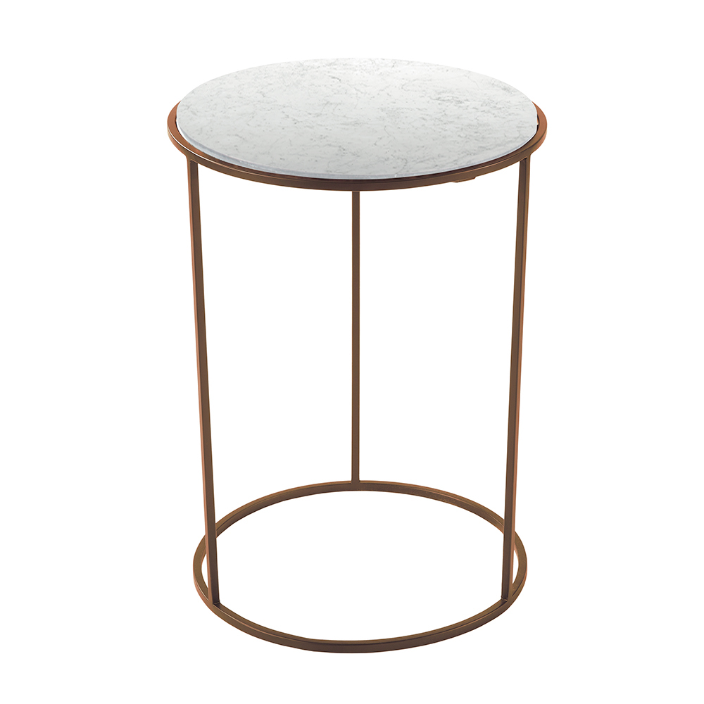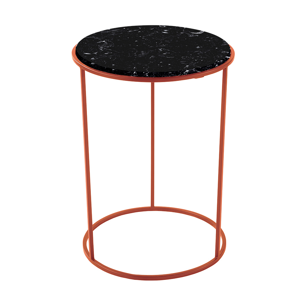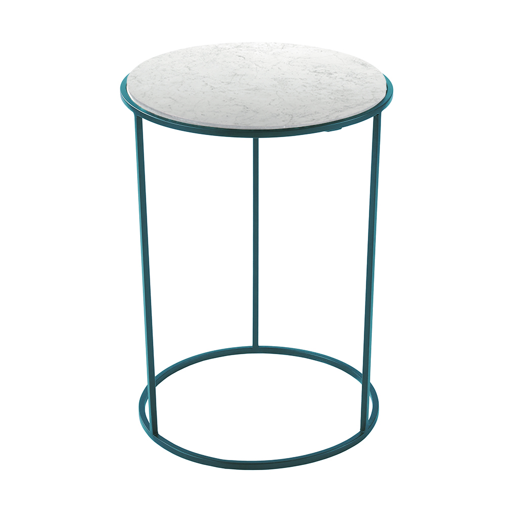 ronde salontafel met ondoorzichtig marmeren blad, verkrijgbaar in drie verschillende varianten, heeft minimale en essentiële lijnen. Het
