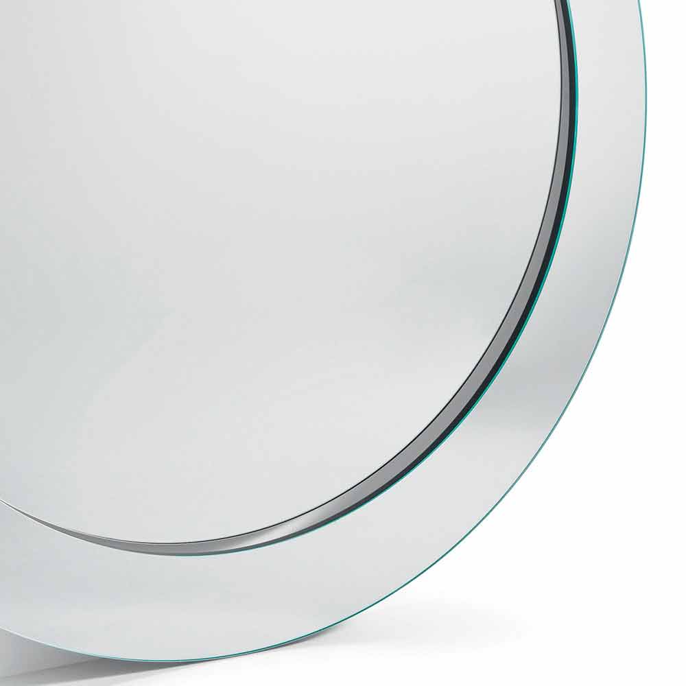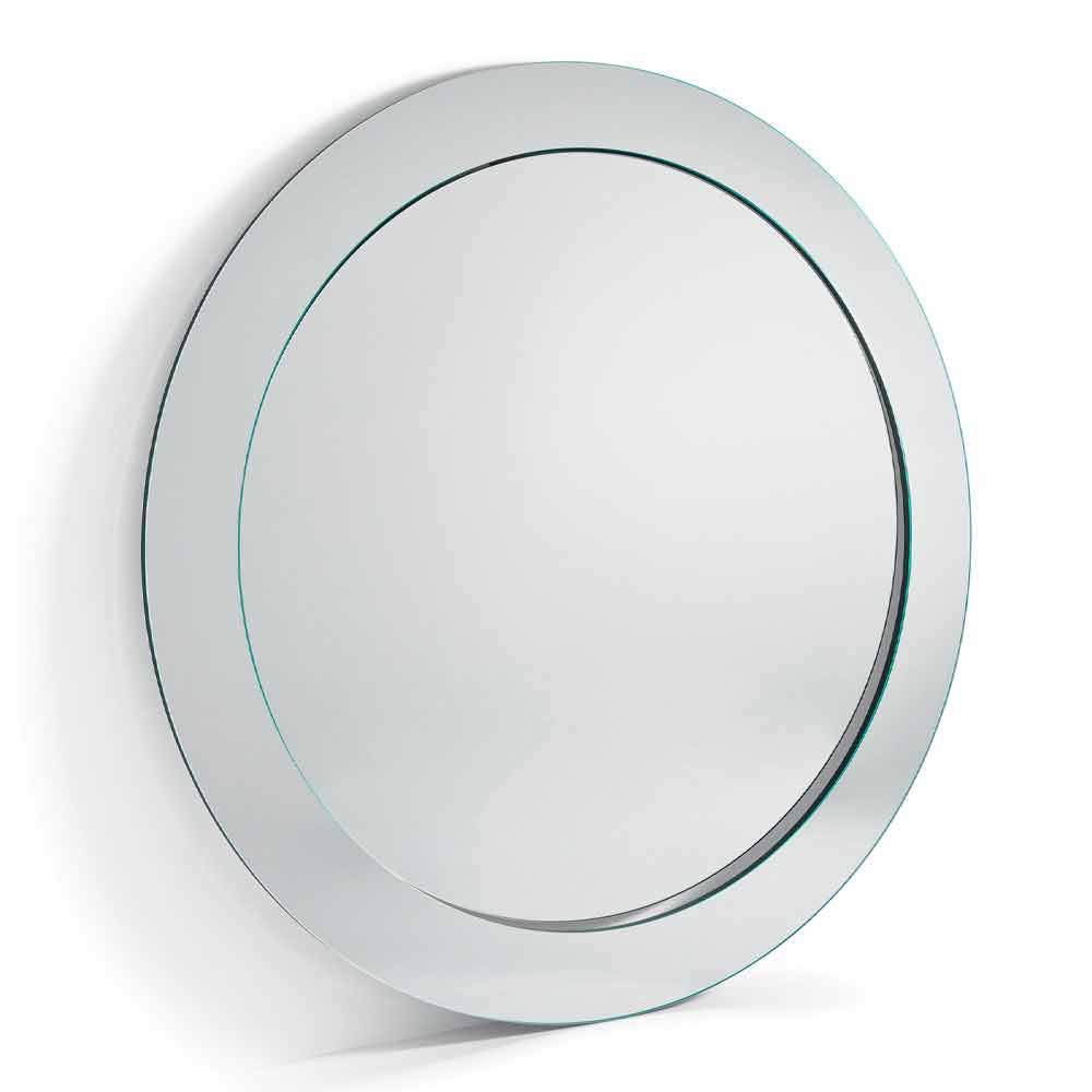 Moderne design ronde vrijstaande spiegel met schuine lijst, met de hand gerealiseerd in Italië.