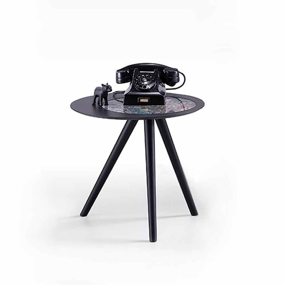 Moderne salontafel met rond blad in marmer steengoed Made in Italy.