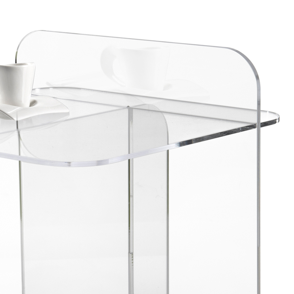 Deze salontafel is niet zomaar een meubelstuk, het is een stijlstatement. Het is volledig gemaakt van 100% puur plexiglas uit nieuw polymeer en heeft een kristallijne transparantie die bijna lijkt te zweven in de ruimte, waarbij het licht opvangt en reflecteert om elke kamer een vleugje helderheid te geven.