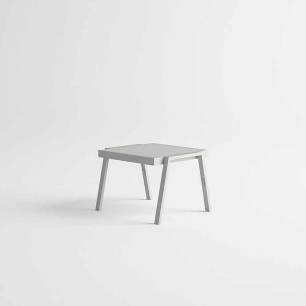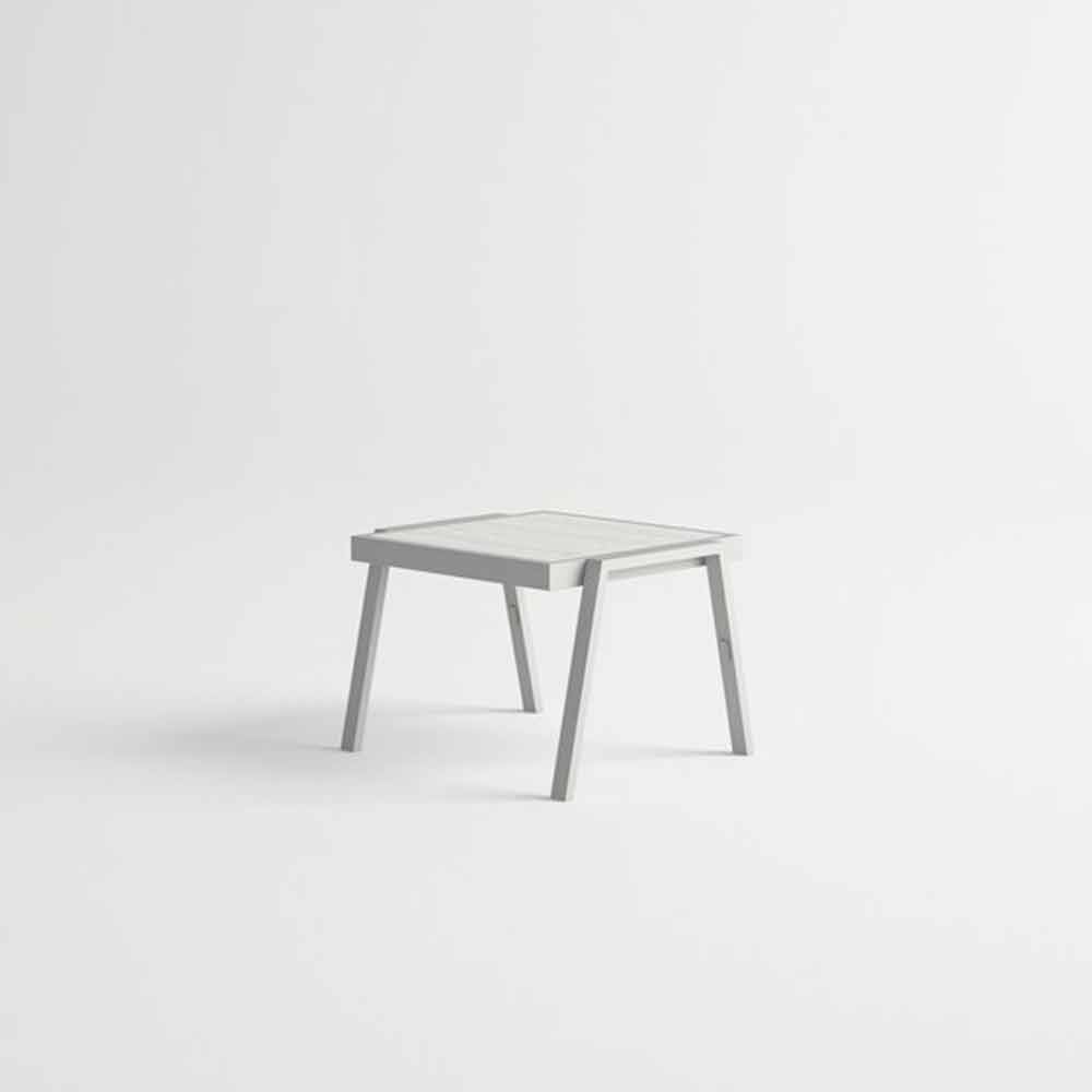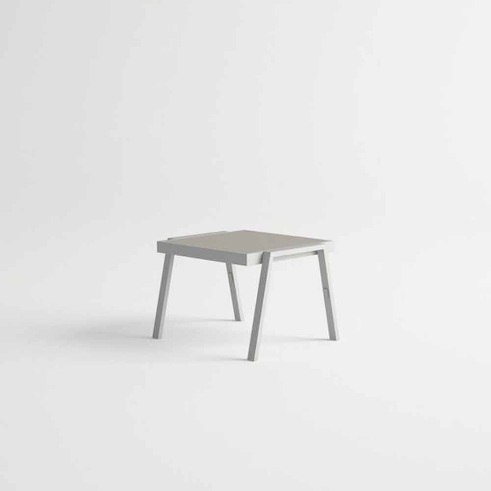Salontafel voor buiten, aluminium structuur en gelamineerd HPL blad, modern en elegant design.