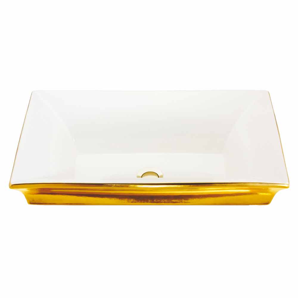 Semirecessed spoelbak handgemaakt in Italië in vuur klei met glanzende witte binnenkant en verfijnd met 24-karaats goud aan de buitenkant.