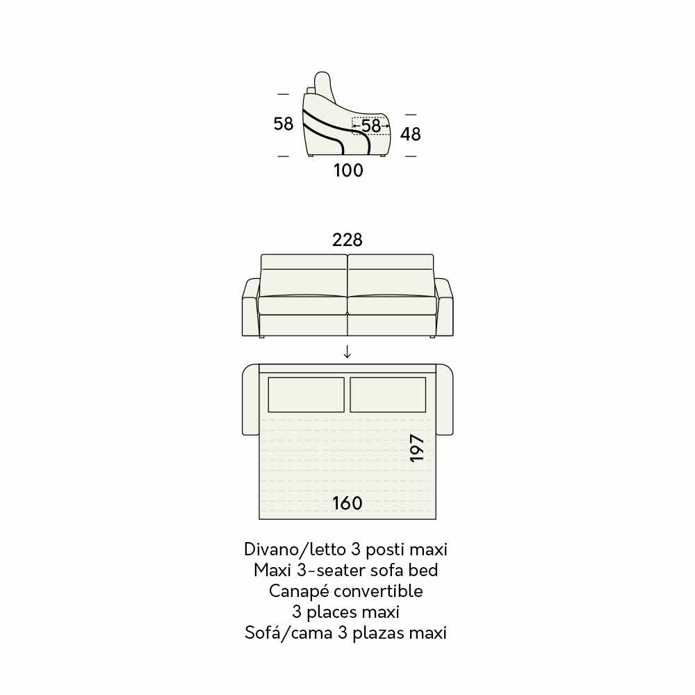 - L 228 x P 100 x H 104 cm (matras: L 160 x P 197 x H 14 cm).