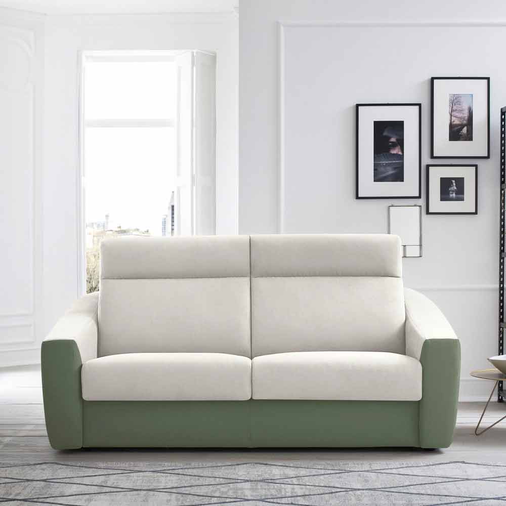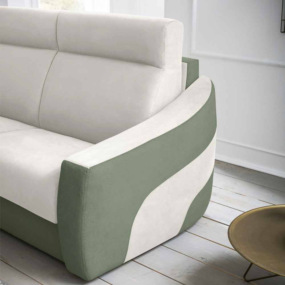 Moderne tweepersoonsslaapbank in tweekleurige stof gemaakt in Italië.