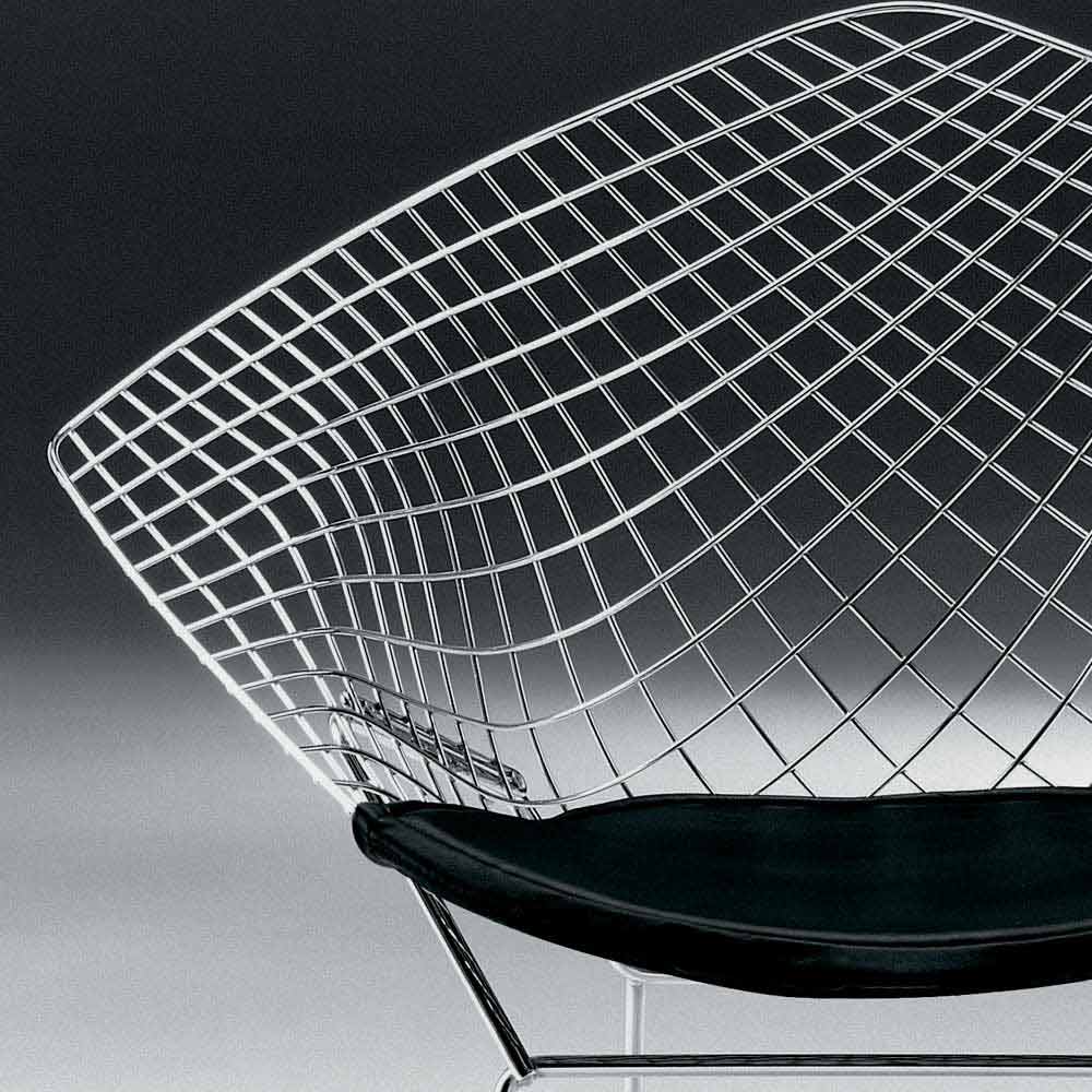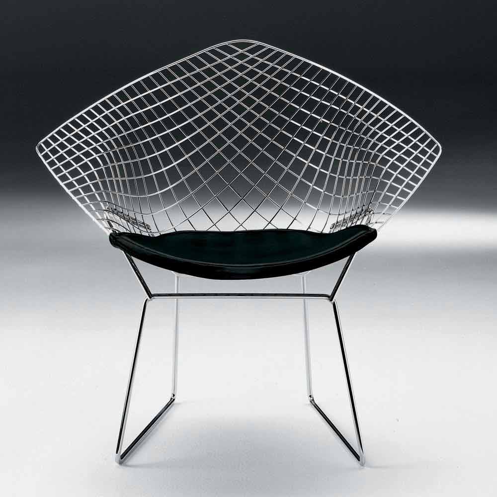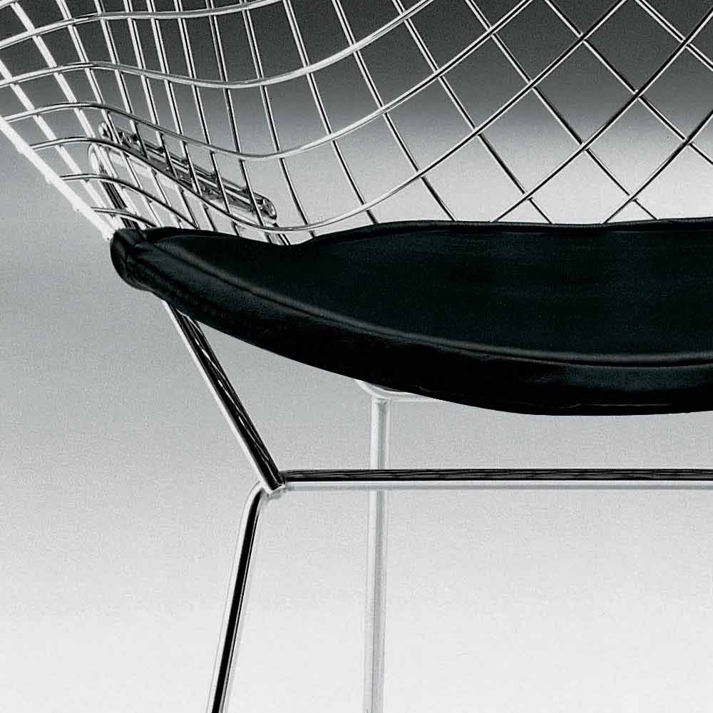 verchroomd stalen frame en gecapitonneerde zitting bekleed met leer.