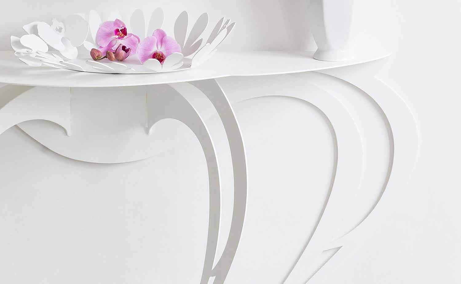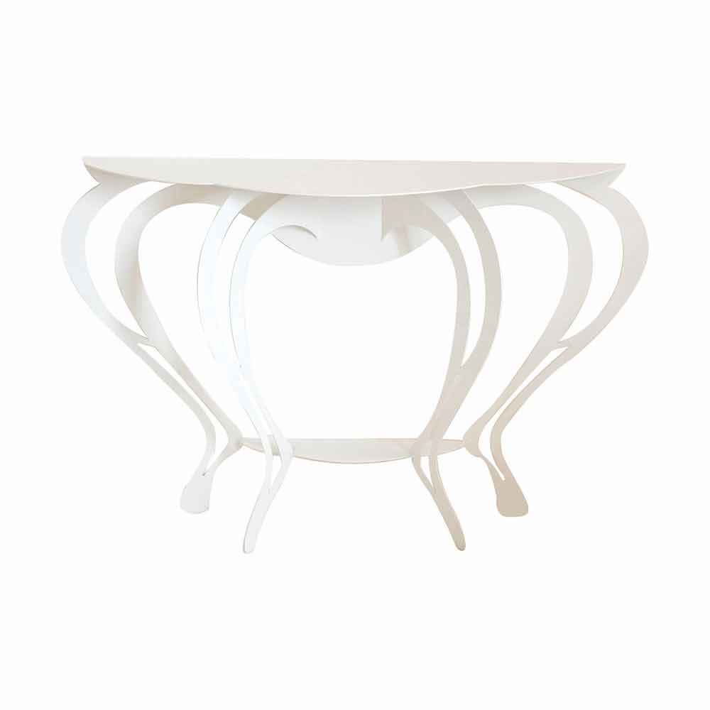 Barbata is een niet te missen woonkamerconsole met gebogen en harmonieuze lijnen die het bijzonder bijzonder maken. Uitgerust met sleuven aan de achterkant om het aan de muur te bevestigen en handgemaakt in Italië in ijzer.