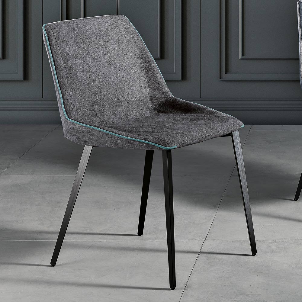 Oriella is een comfortabele stoel voor de woonkamer , gerealiseerd in Italië met een driehoekige kegelvormige metalen structuur (30x30) geschilderd in mat antraciet; stoffen zitplaats verkrijgbaar in verschillende kleuren: