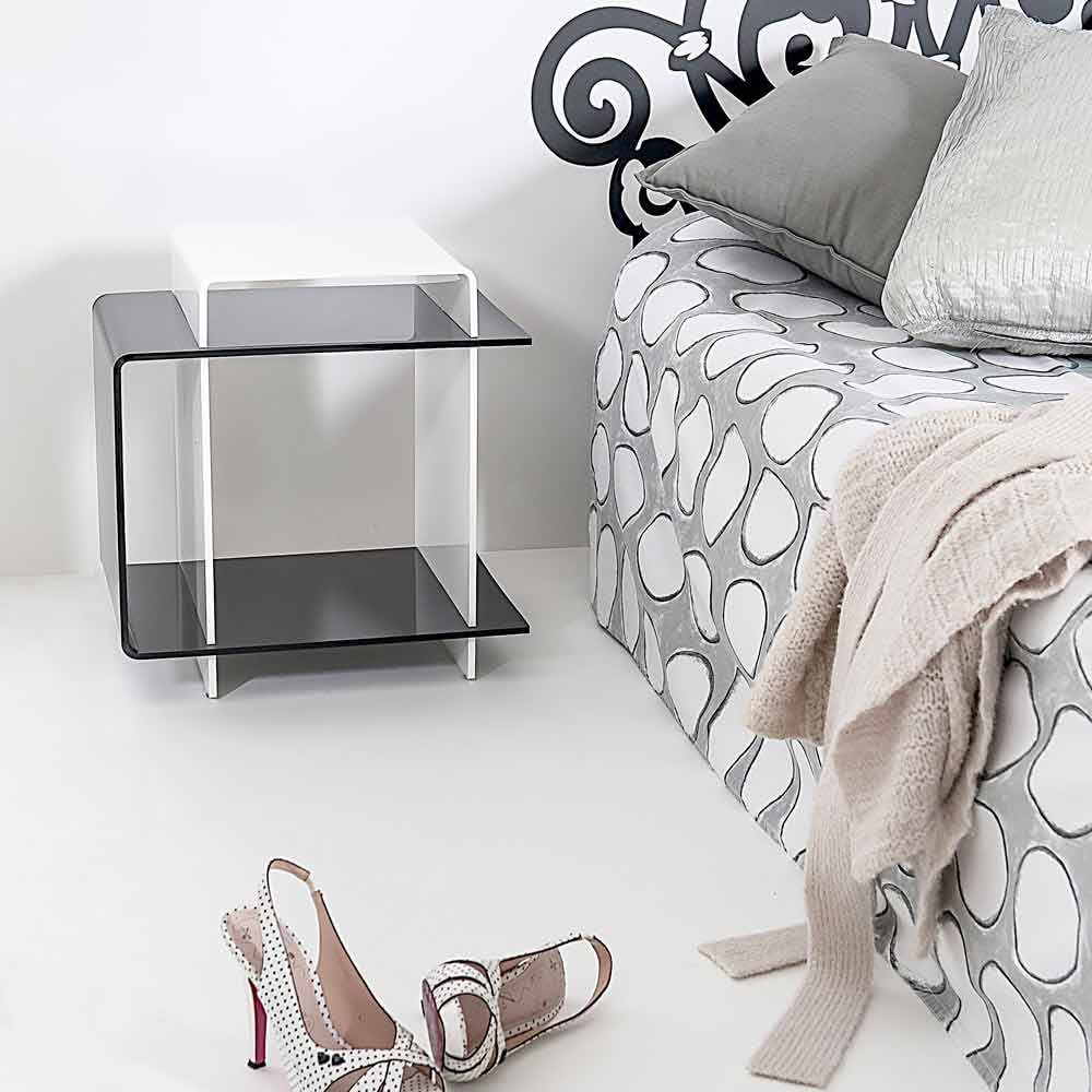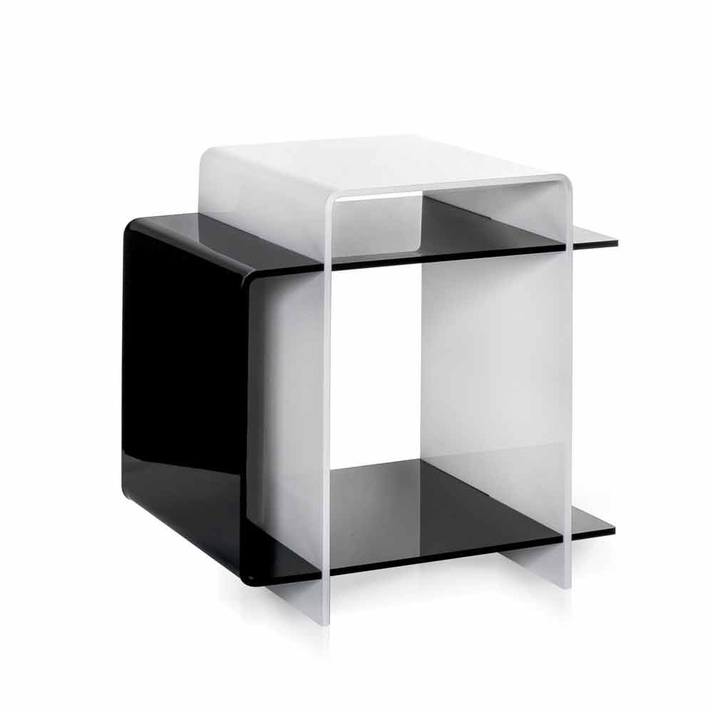 Moderne tafel met 3 planken zwart en wit Gosto made in Italy Veelzijdige tafeltje / nachtkastje zwart-wit 3 legborden, geïnspireerd door de geometrie en de bi-kleuren van de jaren '70, gemaakt van 100% zuivere polymeer plexiglas, laser gesneden en gevouwen bij hoge temperaturen. De belangrijkste dikte maakt de structuur volledig zelfdragend. De plexiglas schokbestendig, veerkrachtig, duurzaam en warmte-isolatie. De helderheid en de helderheid blijven constant en ongewijzigd in de tijd. De plexiglas PMMA uit nieuwe polymeer wordt gebruikt door niet-toxisch, hypoallergeen, geurloos en antibacteriële. Recyclebaar 100%. Bedacht, ontworpen en gemaakt in Italië, met Italiaanse materialen.