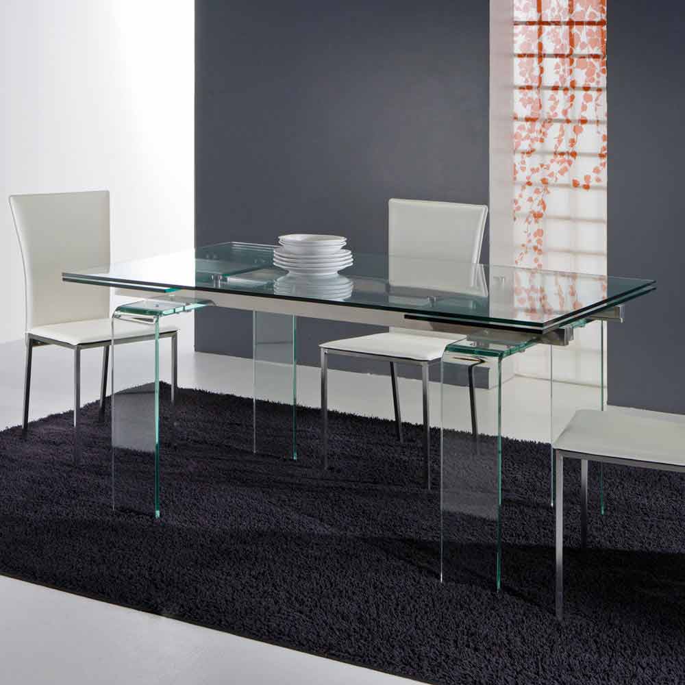 Deze tabel is geheel gemaakt van transparant gehard glas, met plan in de dikte van 12 mm en benen met een dikte van 19 mm.