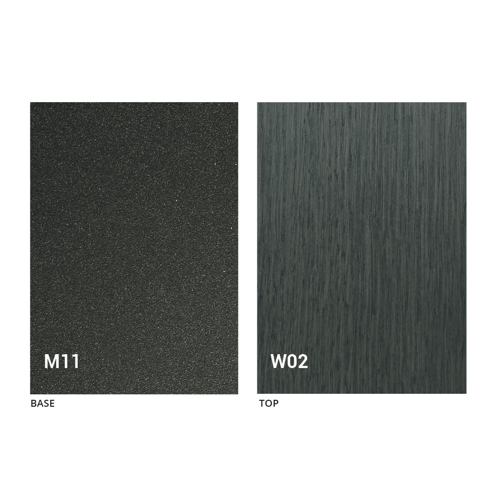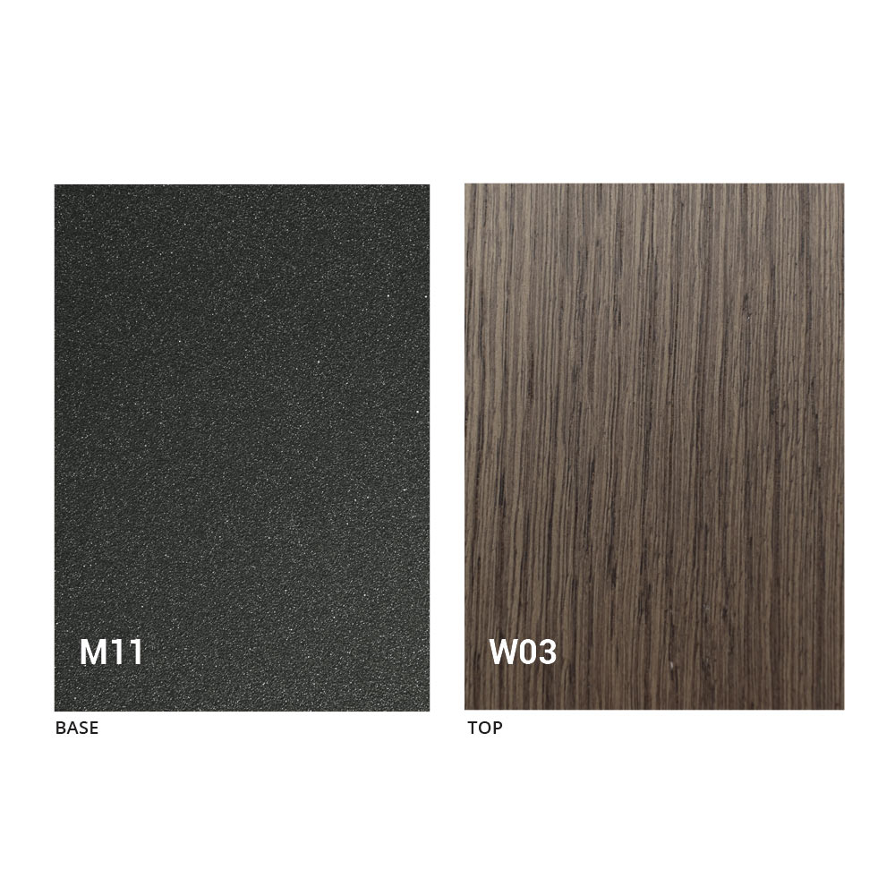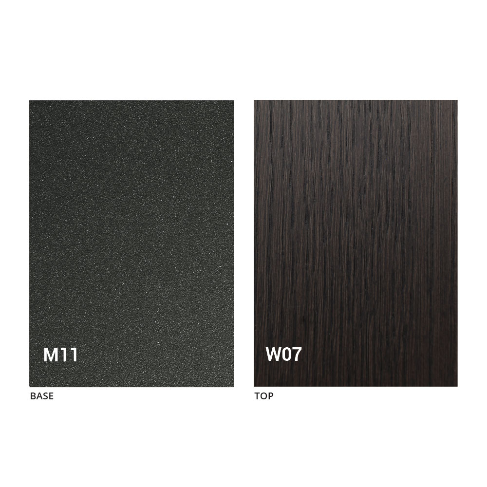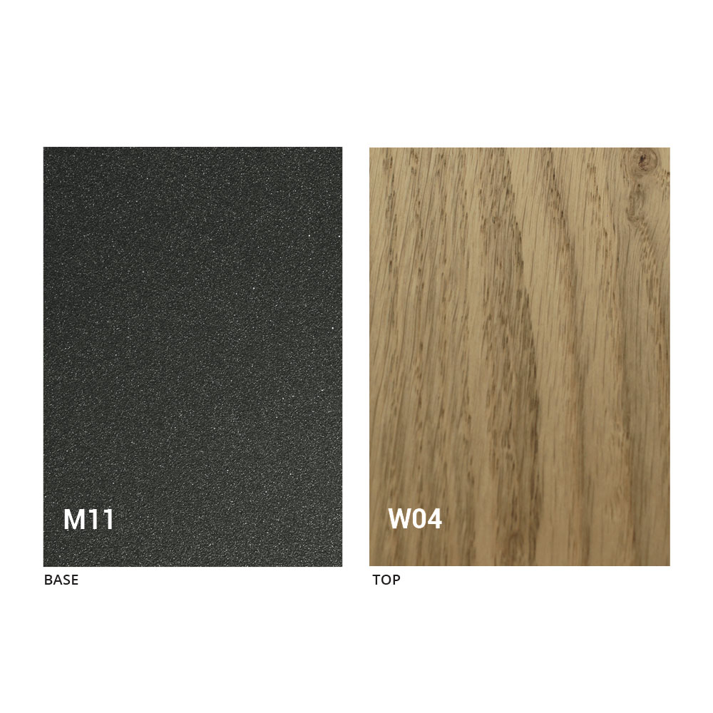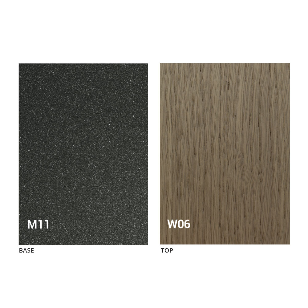 Het blad en de basis van de tafel kunnen worden aangepast met verschillende voorbeeldafwerkingen. Neem voor informatie contact met ons op via het daarvoor bestemde formulier "