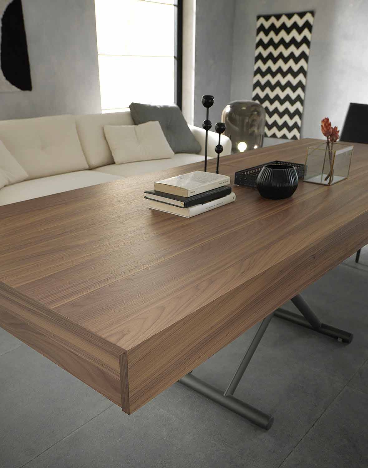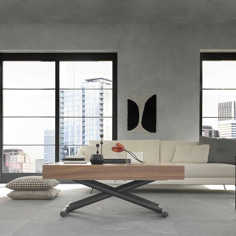 transformeerbare salontafel wordt gekenmerkt door elegante en essentiële lijnen die samengaan met een veelzijdig ontwerp dat geschikt is voor het inrichten van elke stijl van omgeving.
