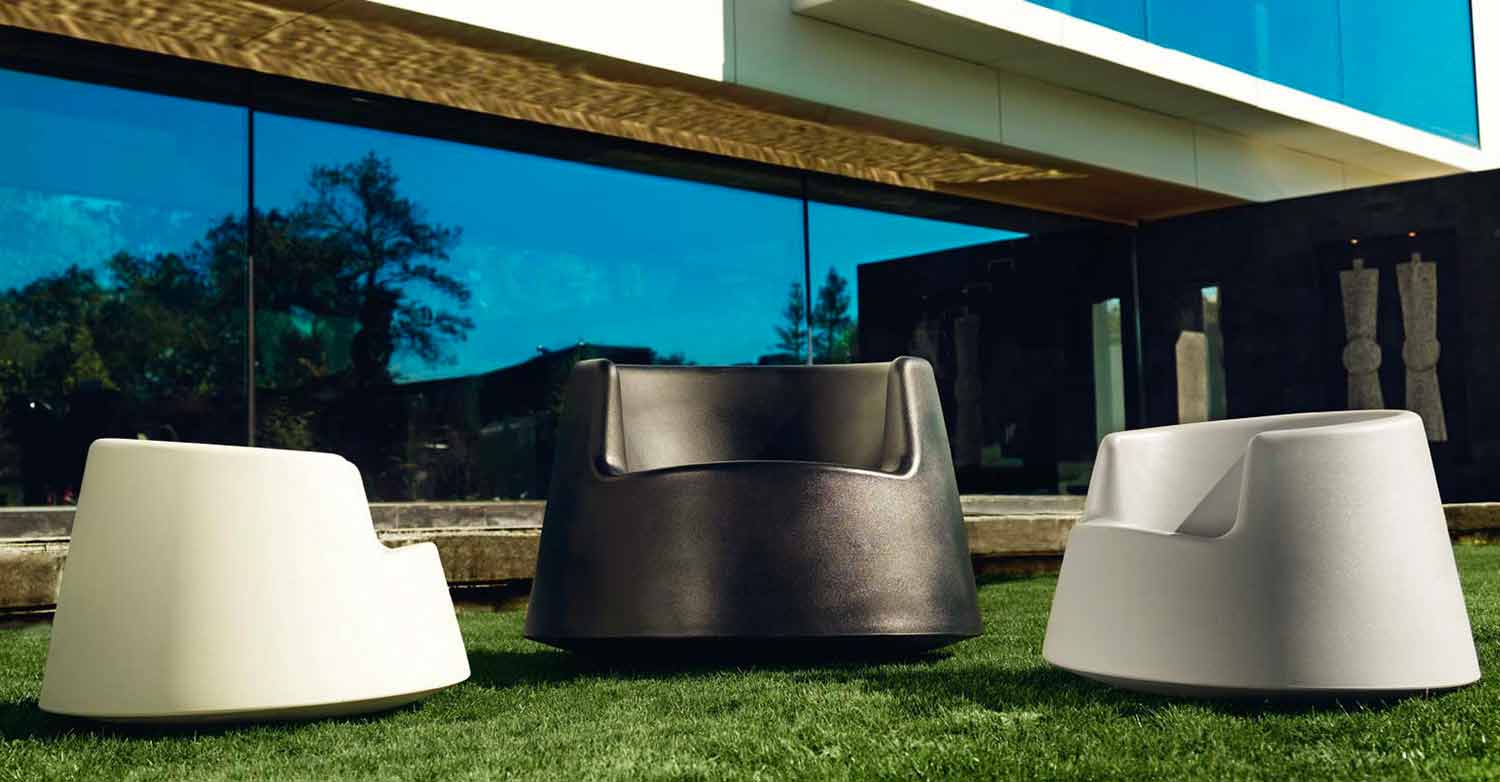 Buiten fauteuil Roulette collectie van Vondom, in polyethyleen