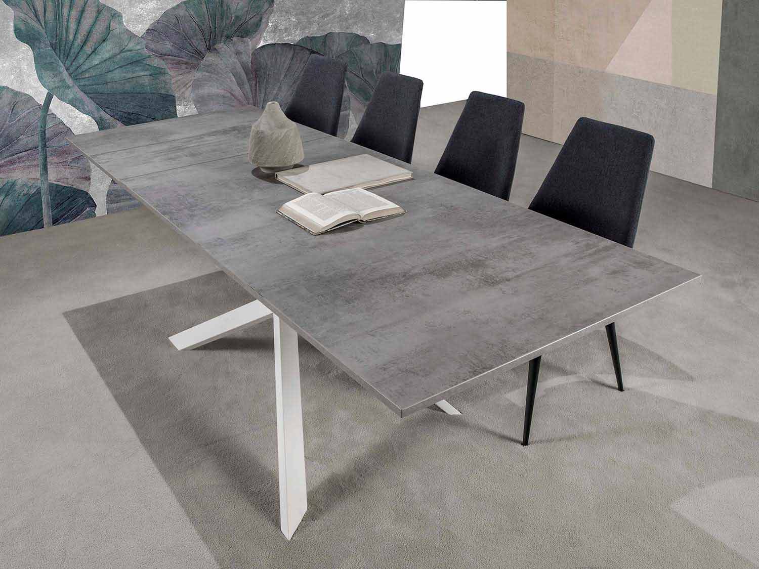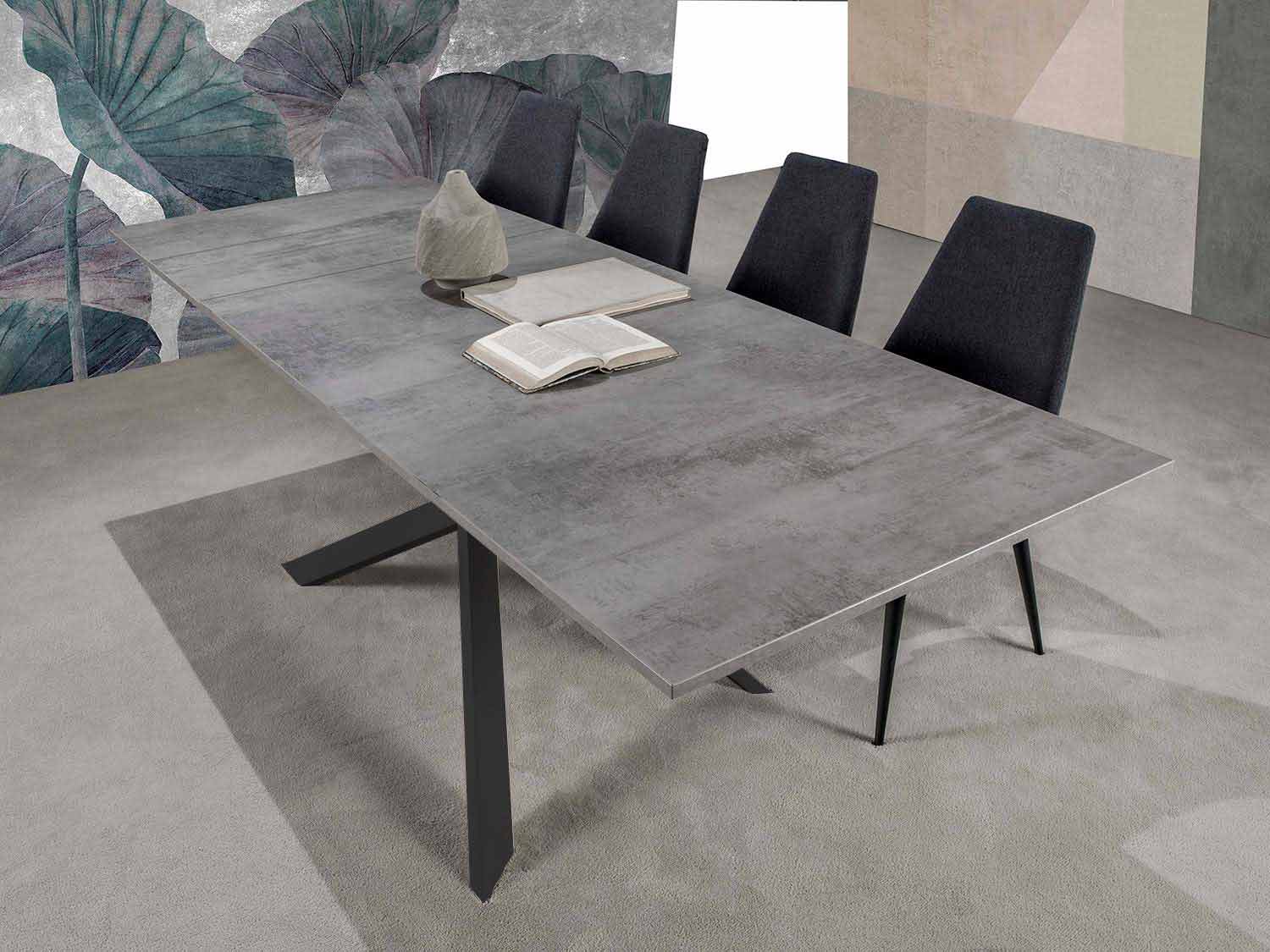 - zwart metalen structuur en klassiek betonnen blad;
