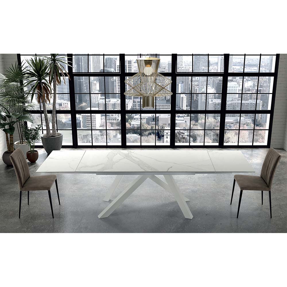 Laminam tafel uitschuifbaar tot 278 cm met wit of grafietstalen onderstel, geproduceerd in Italië.