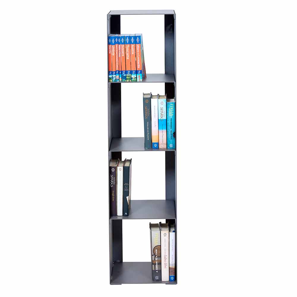 Boekenkast in moderne stijl met planken in zwart, rood, wit of grijs geverfd ijzer; Gemaakt in Italië.