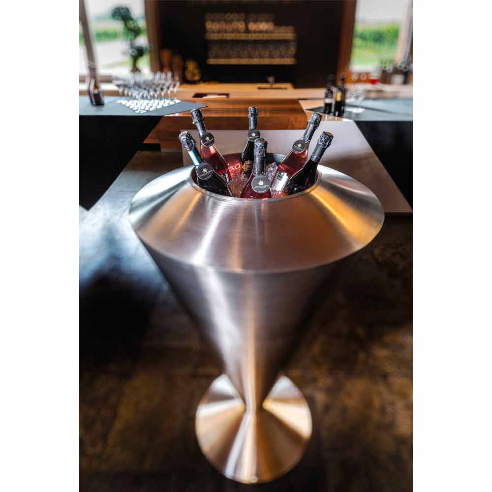 Floor Frappeuse volledig gemaakt in Italië in roestvrij staal met ijsfleshouder. Ideaal voor het inrichten van bars, restaurants, maar ook huiselijke ruimtes gewijd aan dineren, dit meubel is zowel modern als functioneel en biedt een perfecte oplossing om de temperatuur van de wijnen koud te houden terwijl het de omringende meubels verrijkt. Het gebruik van staal maximaliseert de efficiëntie terwijl het zich op een harmonieuze en onberispelijke manier kan aanpassen aan elke stilistische situatie voor een origineel en discreet resultaat . Om de waarde te verhogen is de 100% Made in Italy verwerking samen met het gebruik van hoogwaardige grondstoffen die de waarde verhogen en zorgen voor een solide, resistent product met uitstekende duurzaamheid .