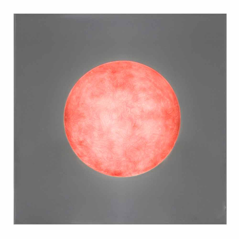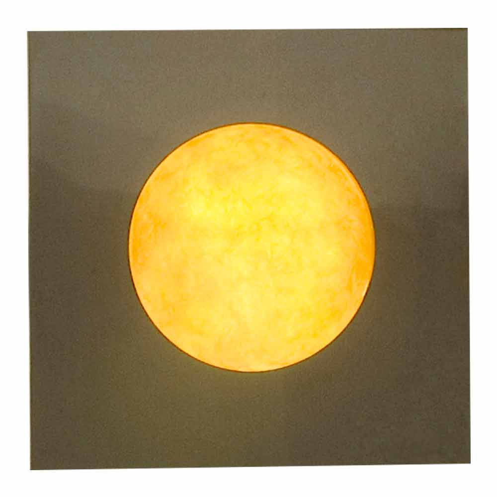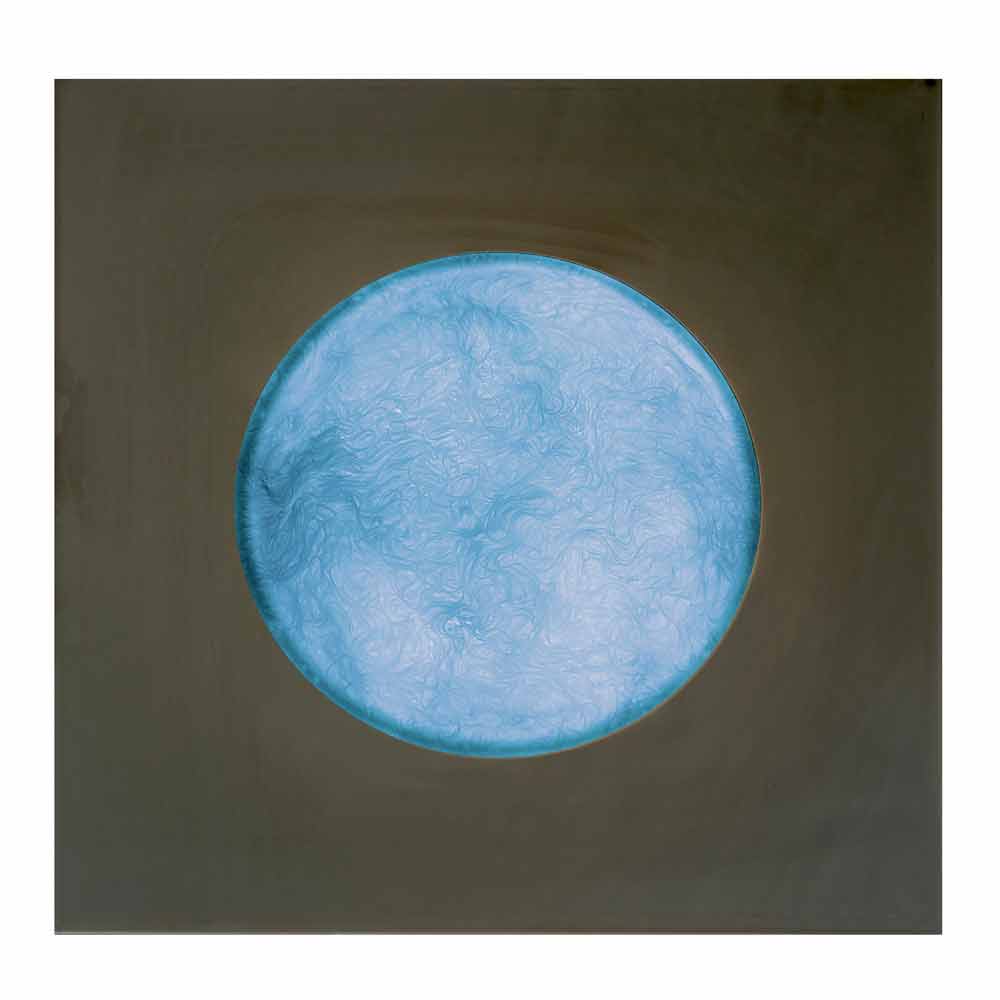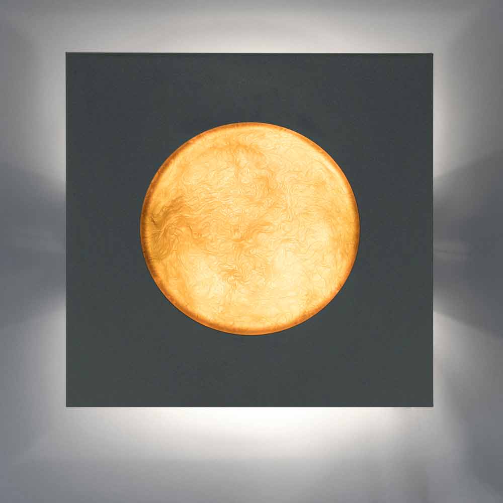 Een echt kunstwerk, gemaakt van gepolijst staal en Nebulite, een materiaal samengesteld uit hars en vezels waarvan de aders de lamp een bepaald maaneffect geven.