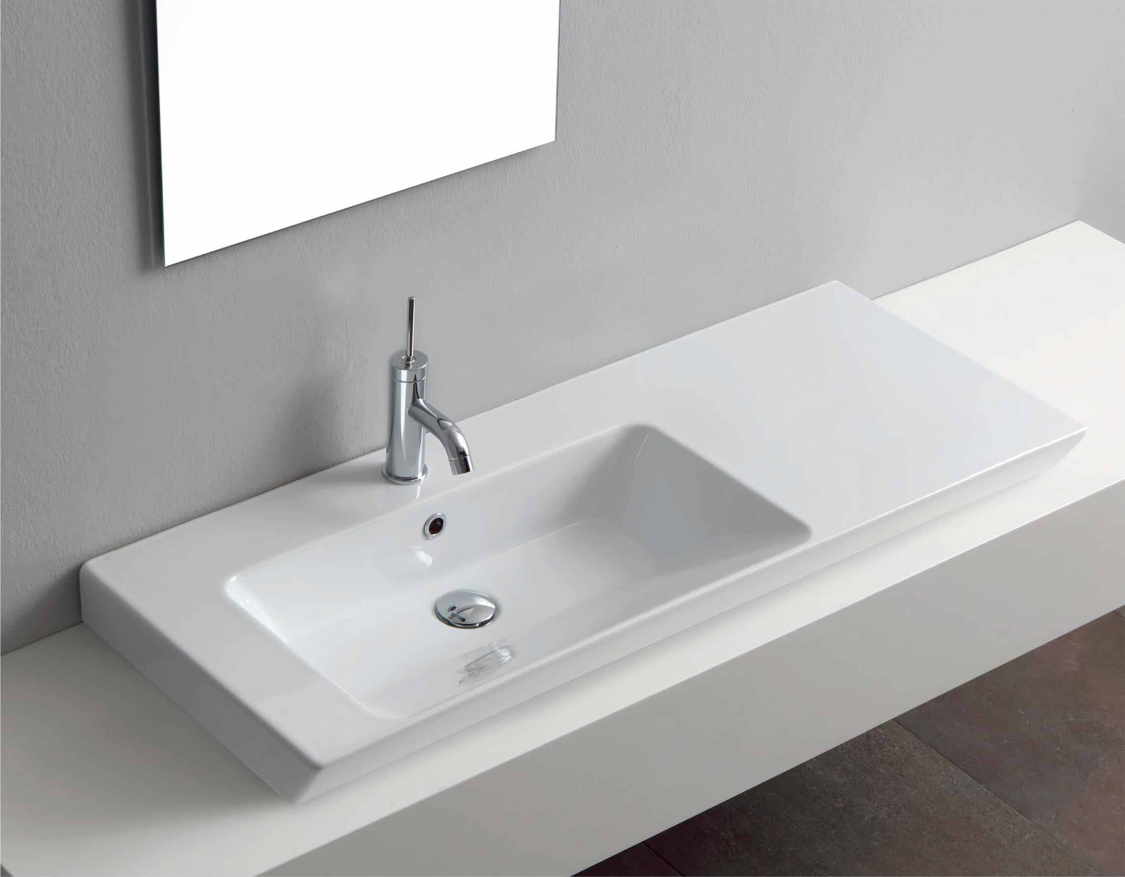 Het aanrecht en de wandinbouwgootsteen worden gekenmerkt door een modern en eenvoudig ontwerp , geschikt voor elke vorm van ruimte en meubilair. Het decoratieve aspect is perfect gecombineerd met de functionaliteit die een essentieel kenmerk is voor de badkamer. Het gebruik van glasachtig porselein , een bepaald soort geglazuurd keramiek gekookt op 1200 ° , maakt het mogelijk om deze spoelbak te gebruiken zonder bang te zijn het oppervlak te bederven. Het is een materiaal dat bestand is tegen zuur, hitte, stoten en krassen en het vervaagt niet na verloop van tijd. Het is ook hygiënisch en gemakkelijk schoon te maken .