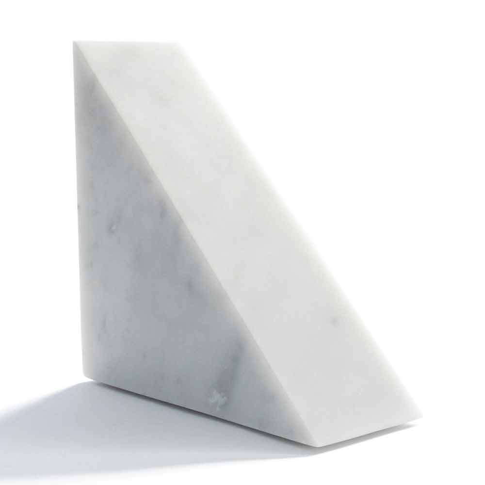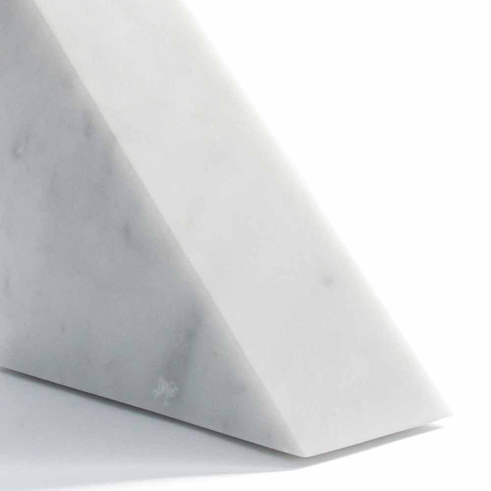 Driehoekige presse-papier die functionaliteit en elegantie tegelijkertijd combineert. Gemaakt van wit Carrara-marmer . Het is een uniek stuk omdat elk blok marmer dat wordt gebruikt, verschilt van de andere wat betreft aders en tinten.