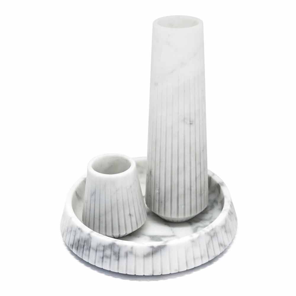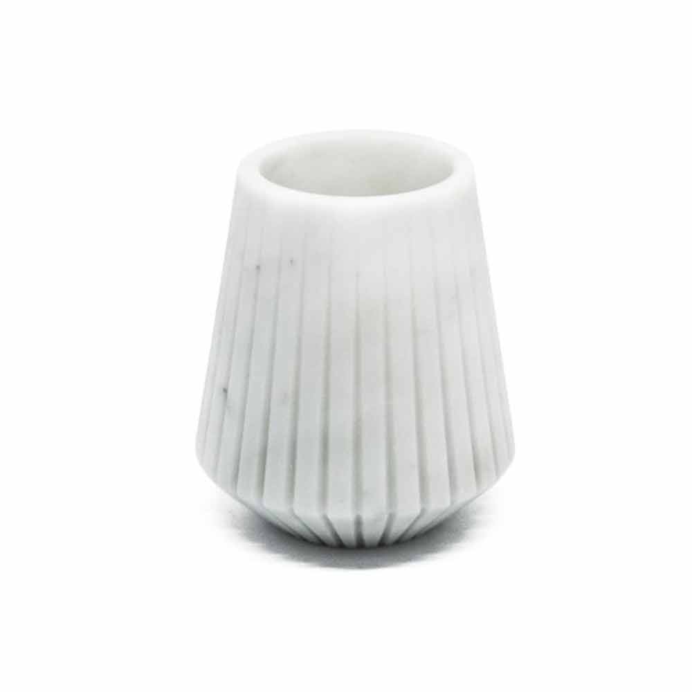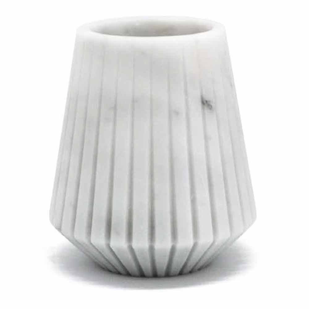 Decoratieve vaas volledig gemaakt van hoogwaardig Carrara-marmer . Het is een uniek stuk omdat elk blok marmer dat wordt gebruikt, verschilt van de andere wat betreft aders en tinten. Het witte marmer is afkomstig uit de steengroeve Poggio Silvestre, een bron van eerste kwaliteit wit marmer dat sinds de vorige eeuw is geclassificeerd.