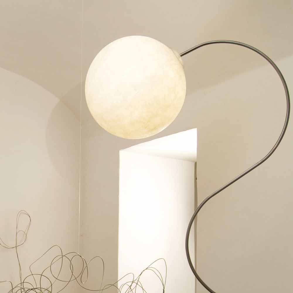 Luna Piantana is ideaal voor uw woonkamer en verspreidt een zacht en suggestief licht in uw kamers, waardoor een magische maanatmosfeer wordt gecreëerd, dankzij de aderen van de Nebuliet; een materiaal dat is samengesteld uit hars en vezels dat de lamp dit bijzondere effect geeft.