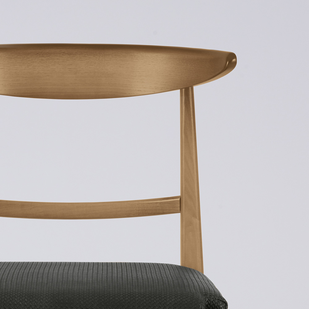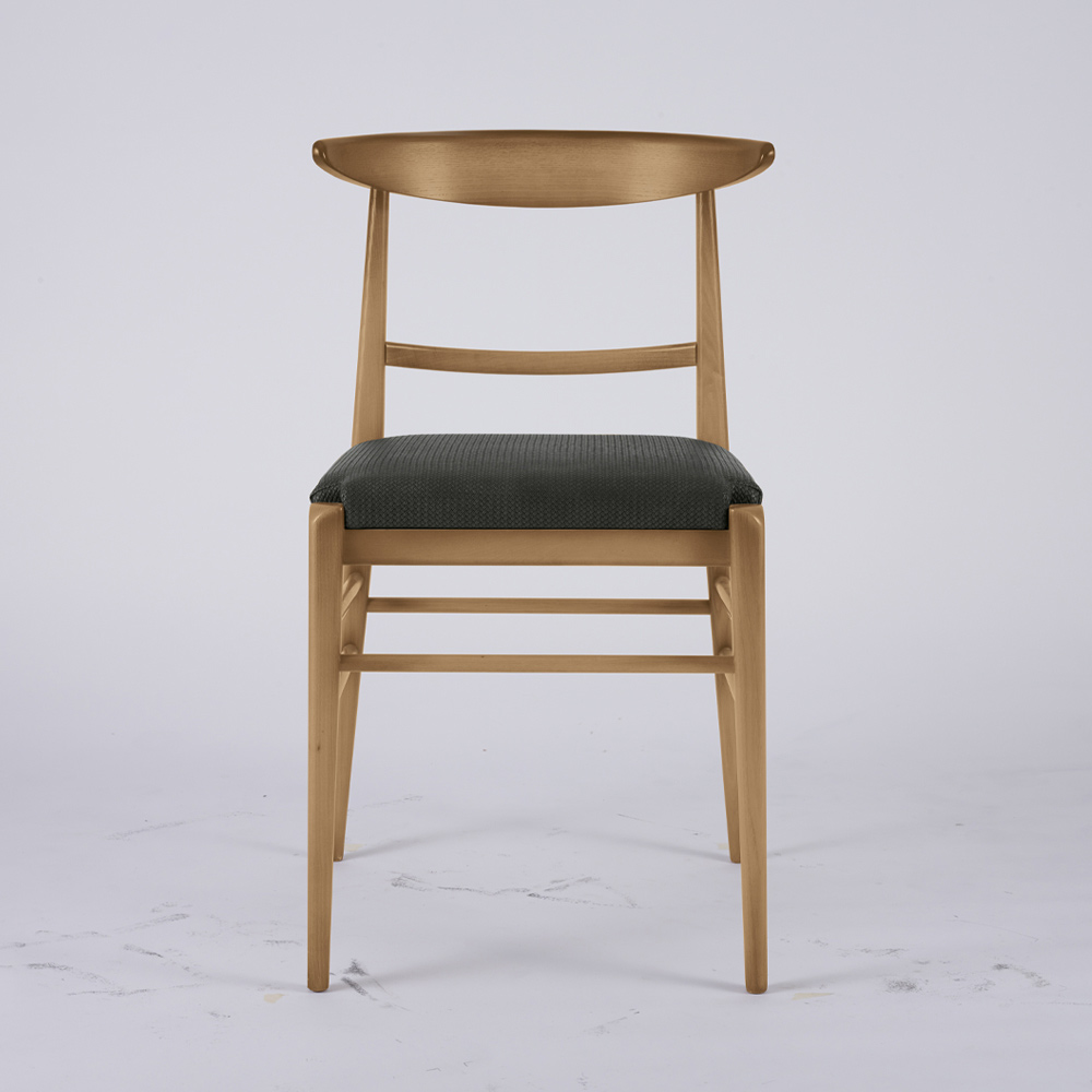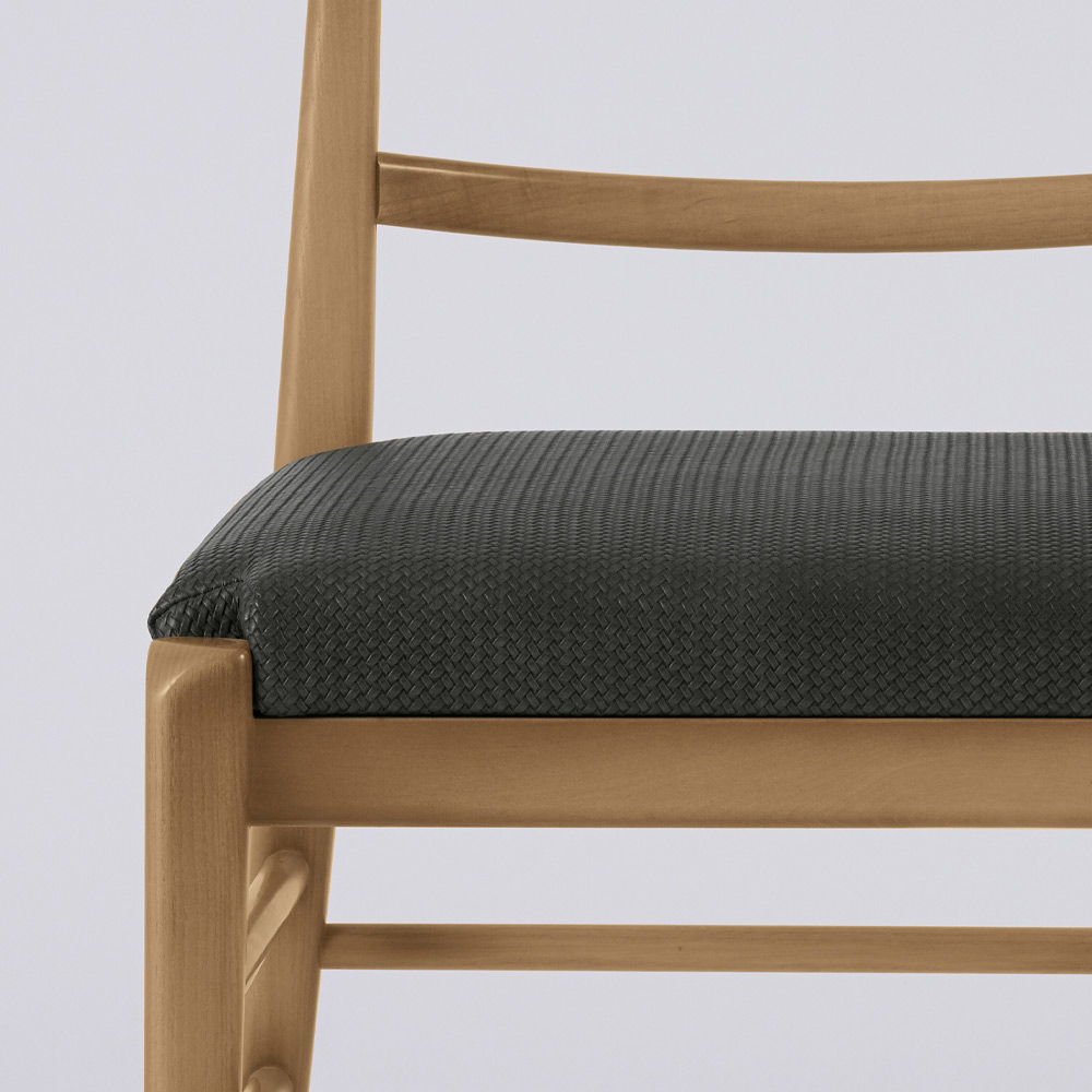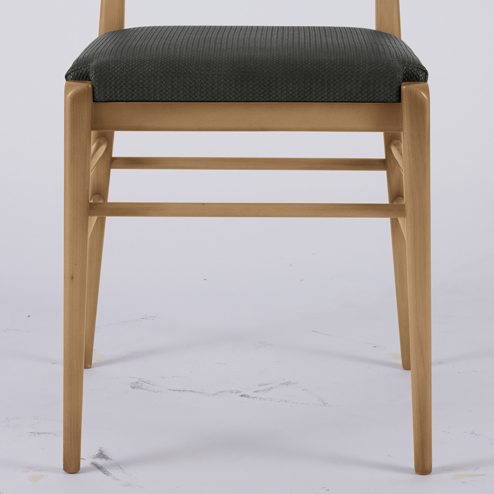 Houten stoel met dwarsbalken en stoffen zitting Made in Italy