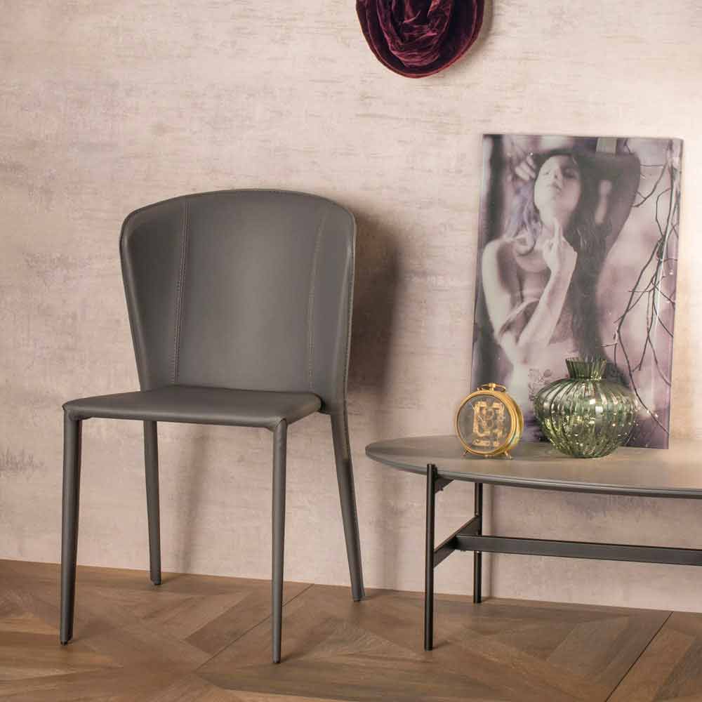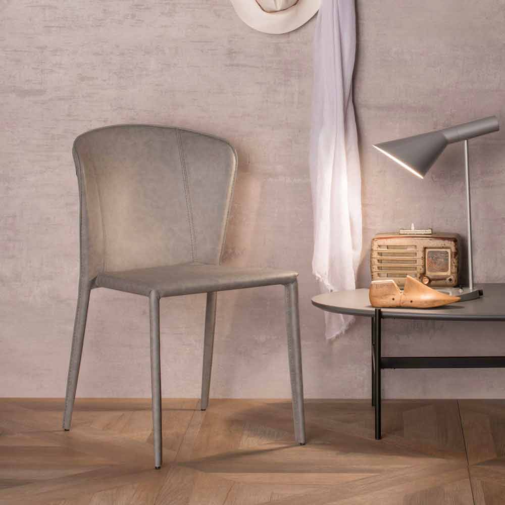 Het heeft een metalen structuur die volledig bedekt is met kunstleer in verschillende kleuren: duifgrijs, grijs, donkergrijs, leer en wit.