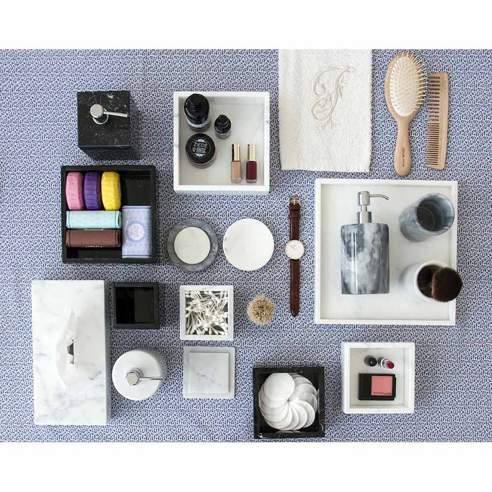 Praktische zakdoek houder beschikbaar in vierkante of rechthoekige versie geheel gemaakt van wit Carrara marmer handgemaakt door gespecialiseerde professionals. Het is een uniek stuk omdat elk blok marmer dat wordt gebruikt, verschilt van de andere wat betreft aders en tinten.