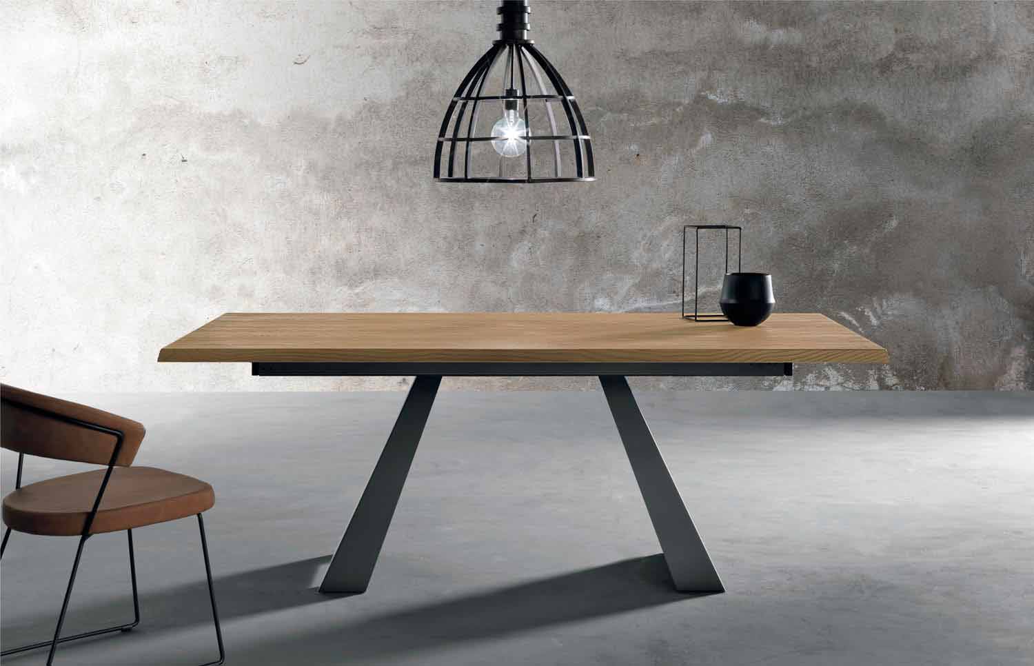 de uitschuifbare eettafel met zijdelingse verschuifbaarheid, geschikt voor elke inrichtingscontext dankzij de combinatie van hout en metaal.