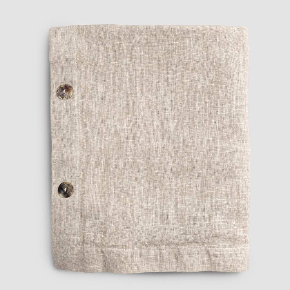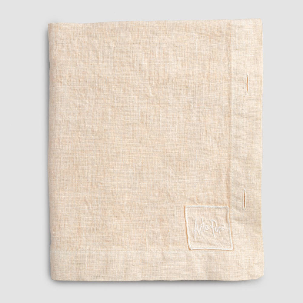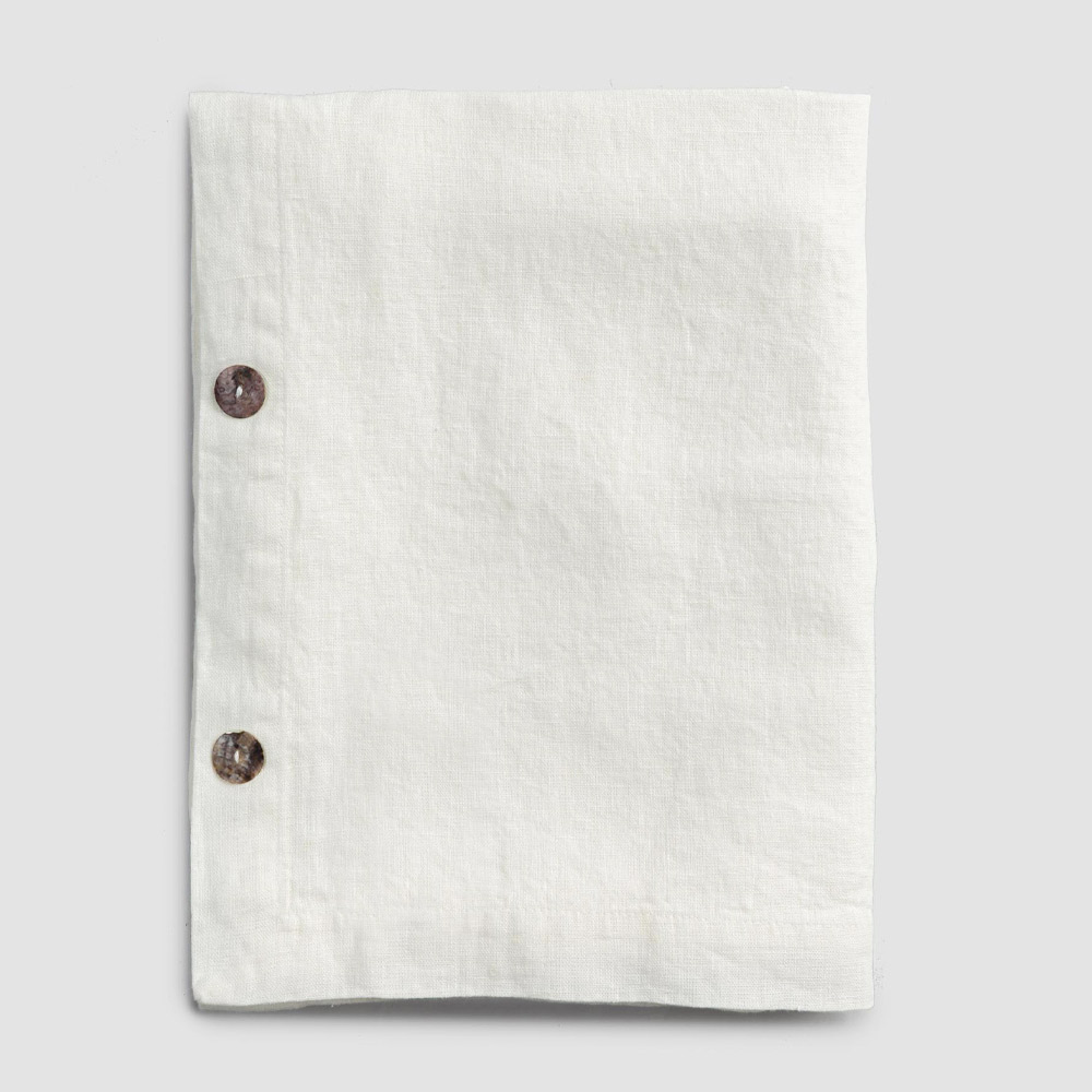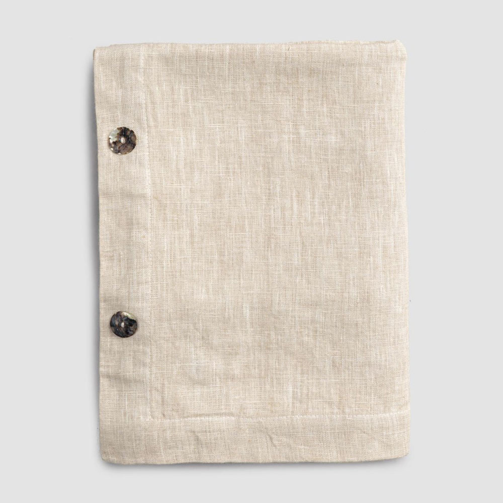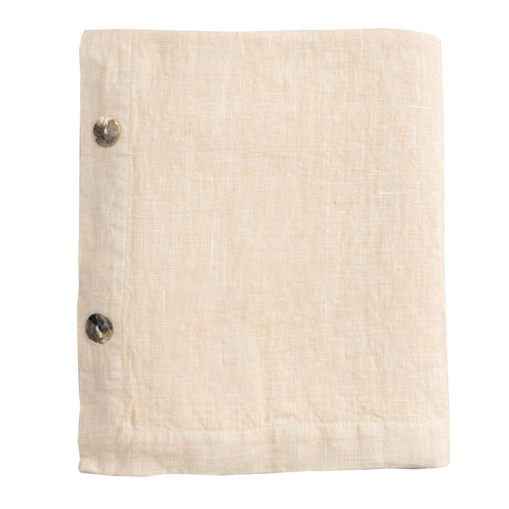 Modulair rechthoekig linnen tafelkleed met parelmoeren knopen, handgemaakte kwaliteit gemaakt in Italië.