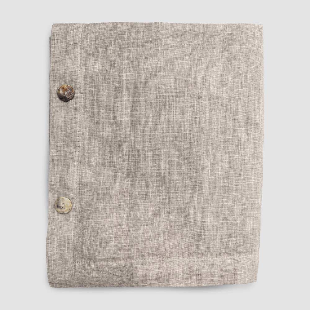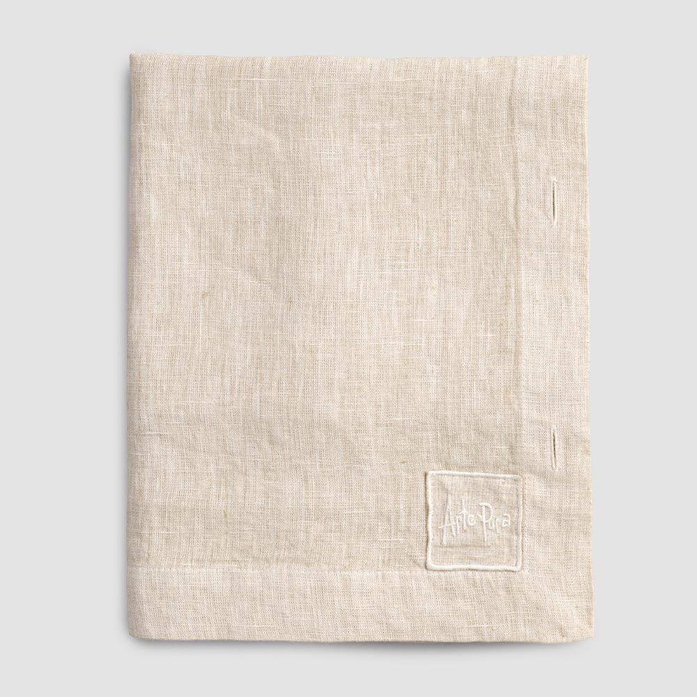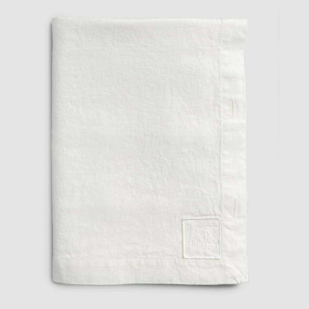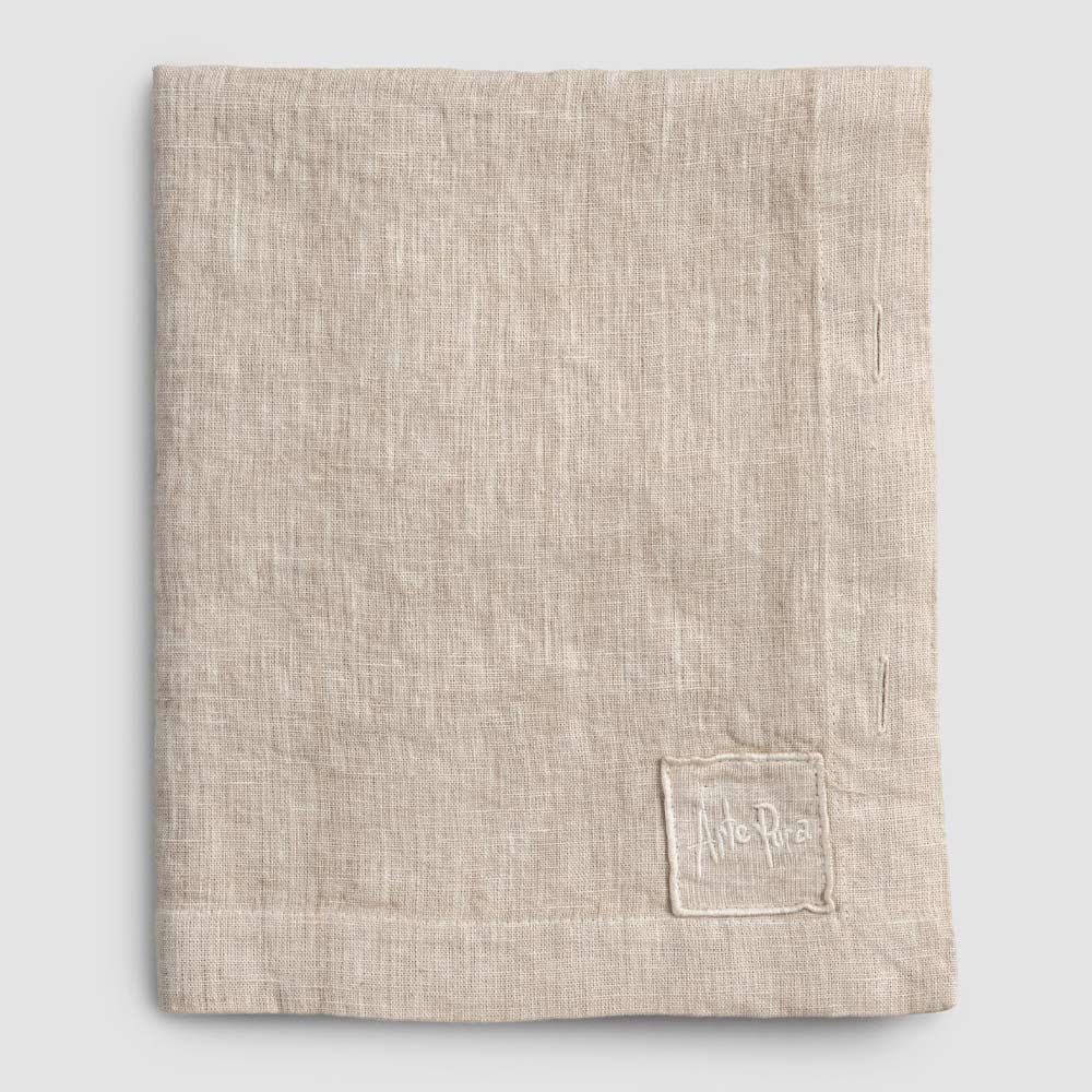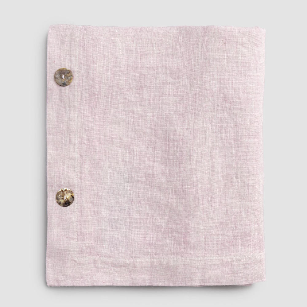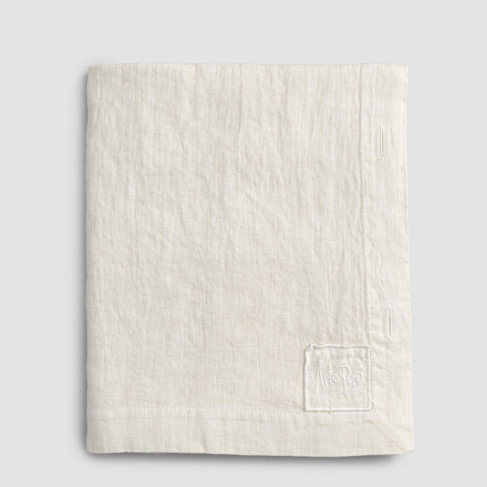 Modulair rechthoekig linnen tafelkleed met parelmoeren knopen, handgemaakte kwaliteit gemaakt in Italië.