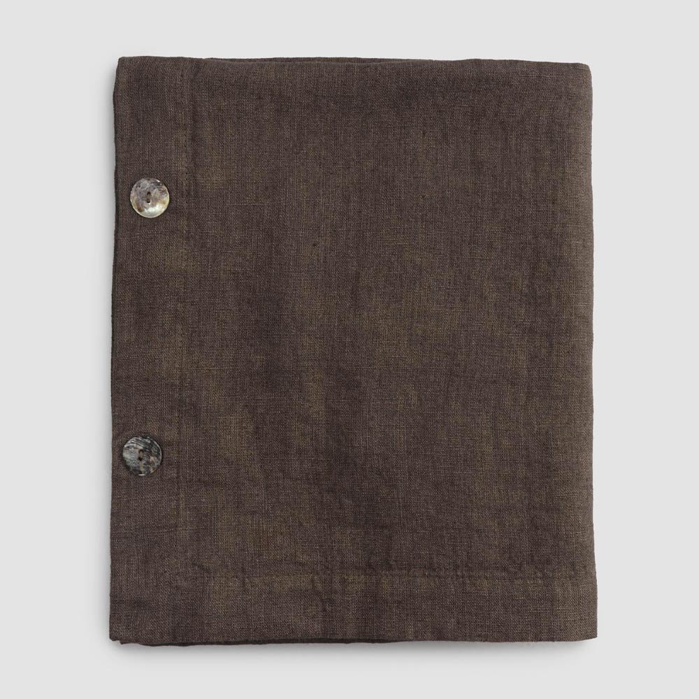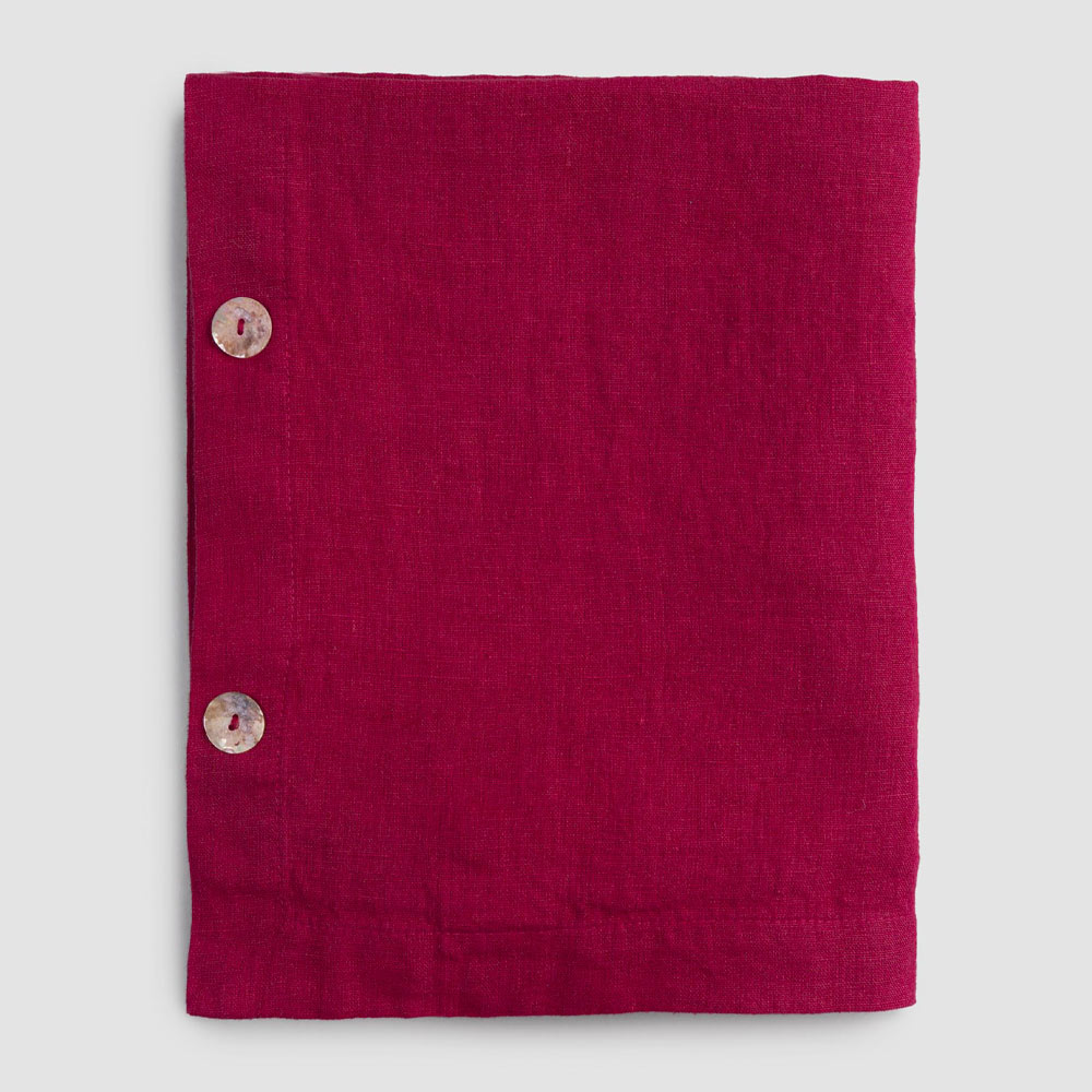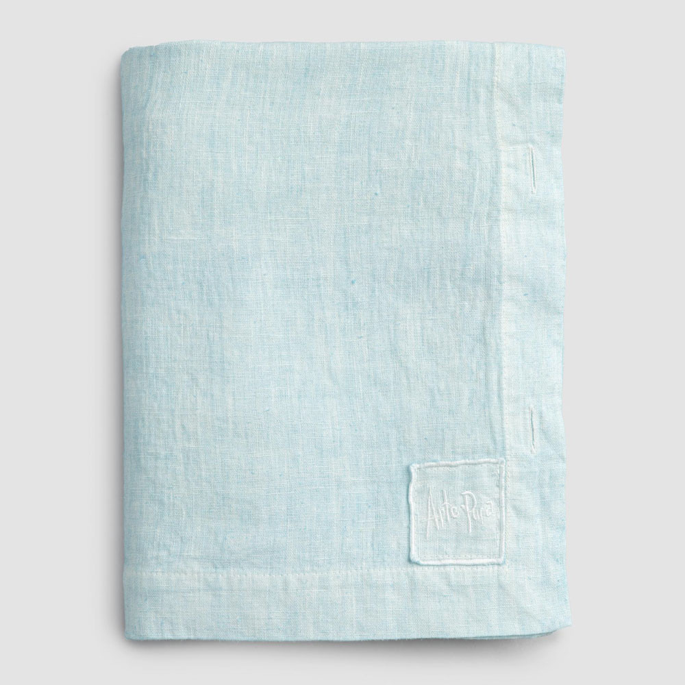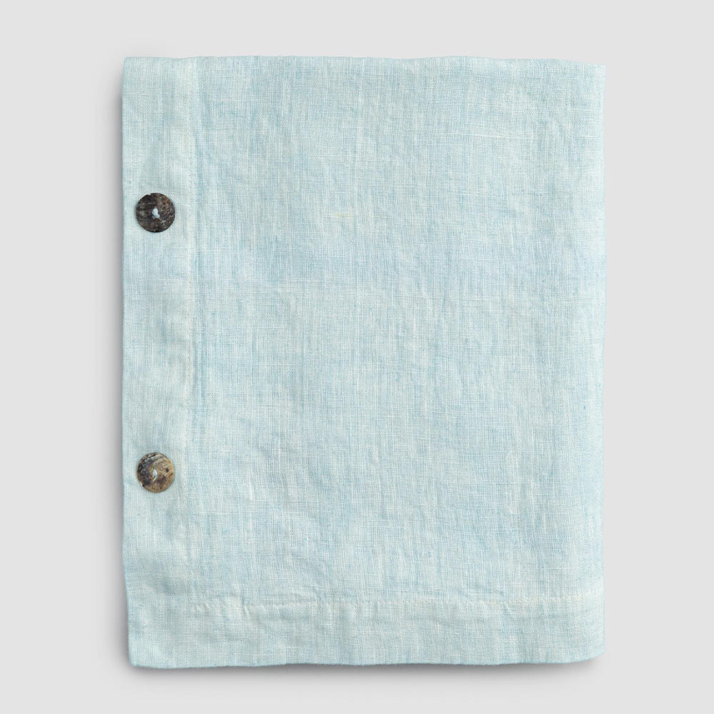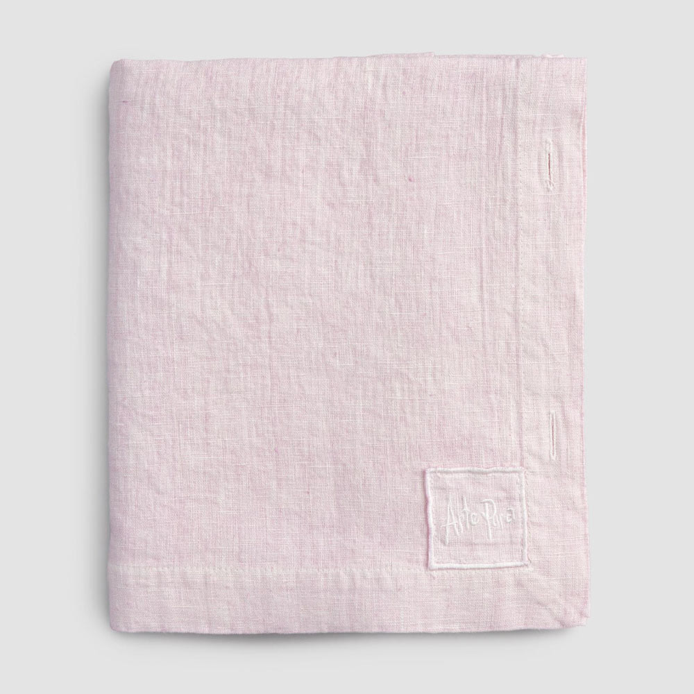 Modulair rechthoekig linnen tafelkleed met parelmoeren knopen, handgemaakte kwaliteit gemaakt in Italië.