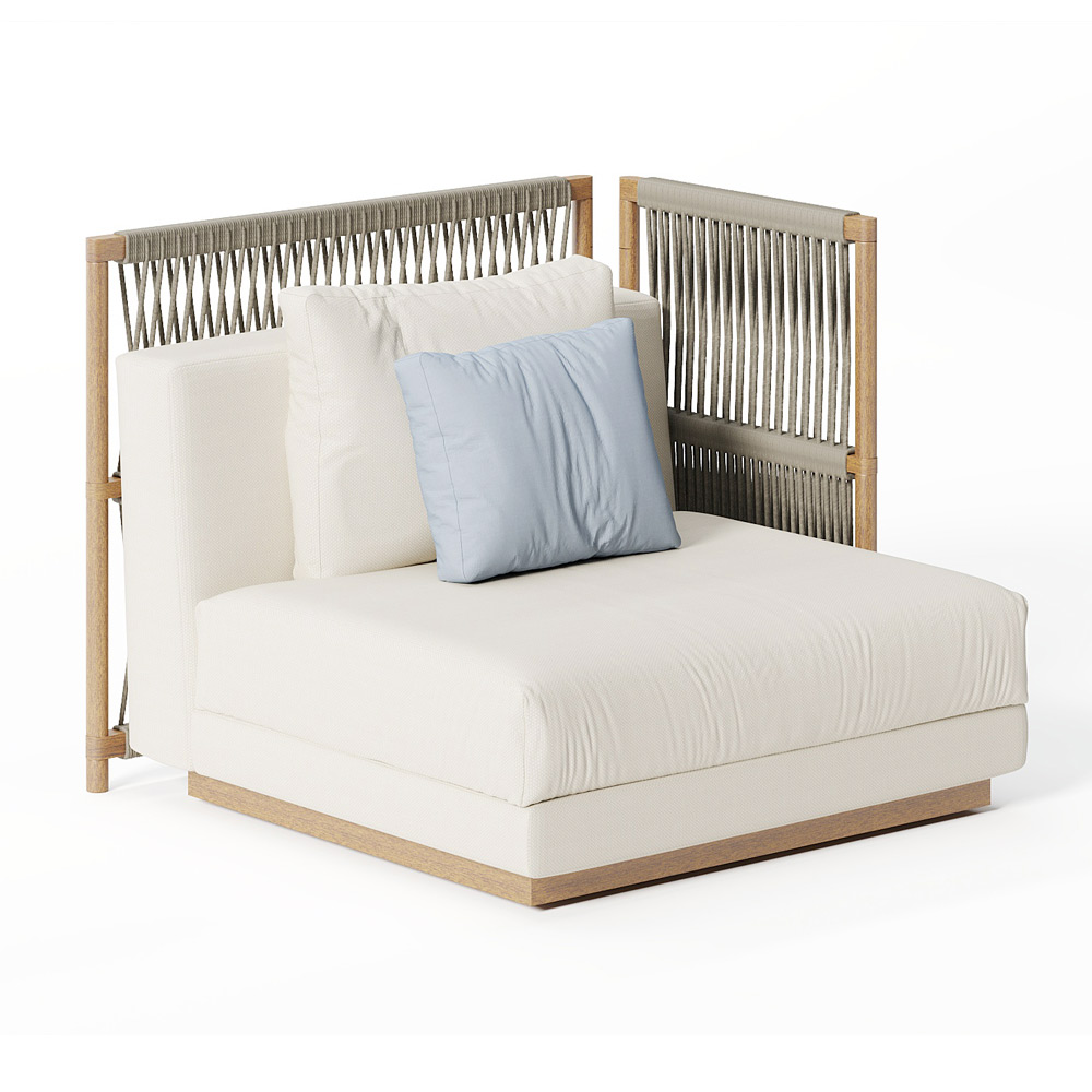 elegantie en verfijning in elke omgeving waarin het wordt geplaatst. De iroko-houtstructuur herinnert dankzij het weven en de decoratie aan de