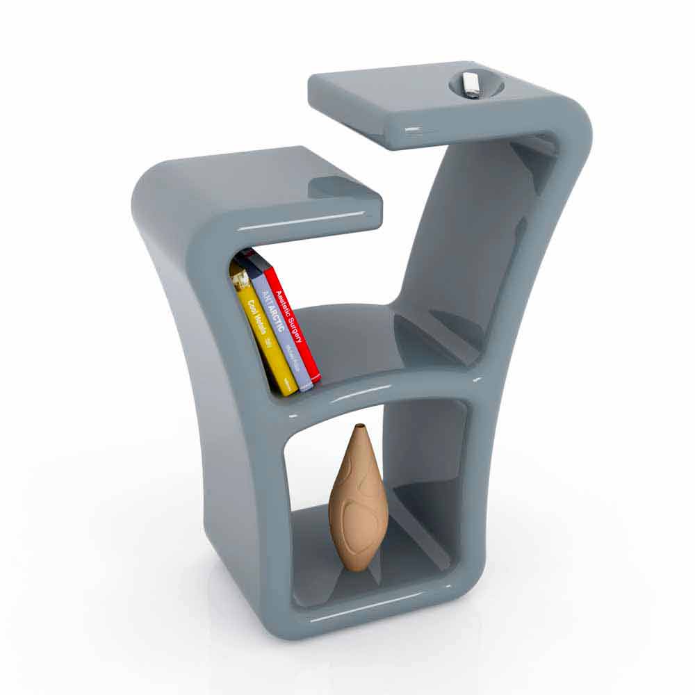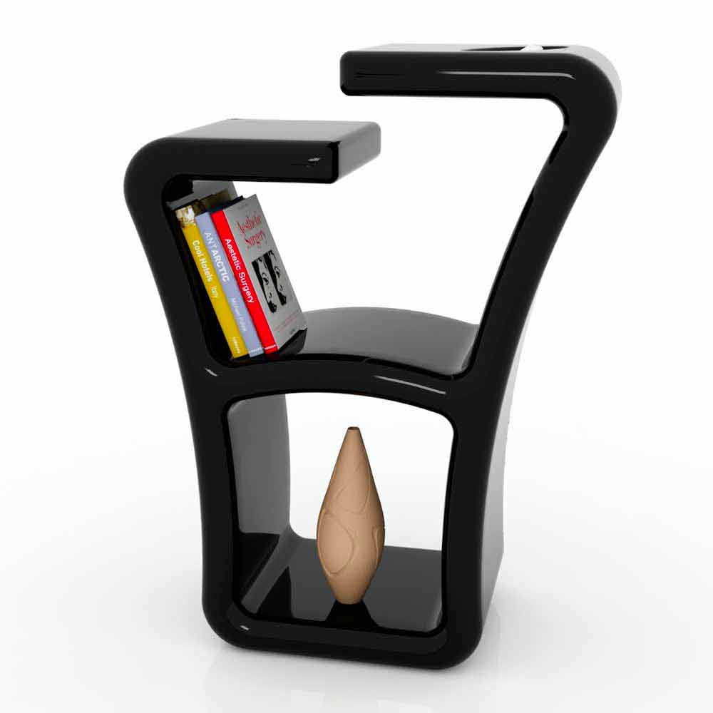 Twice is een console met meerdere planken die gebruikmaakt van de kwaliteiten van het materiaal waarmee het is gemaakt, spelend met rondingen en vlakken.